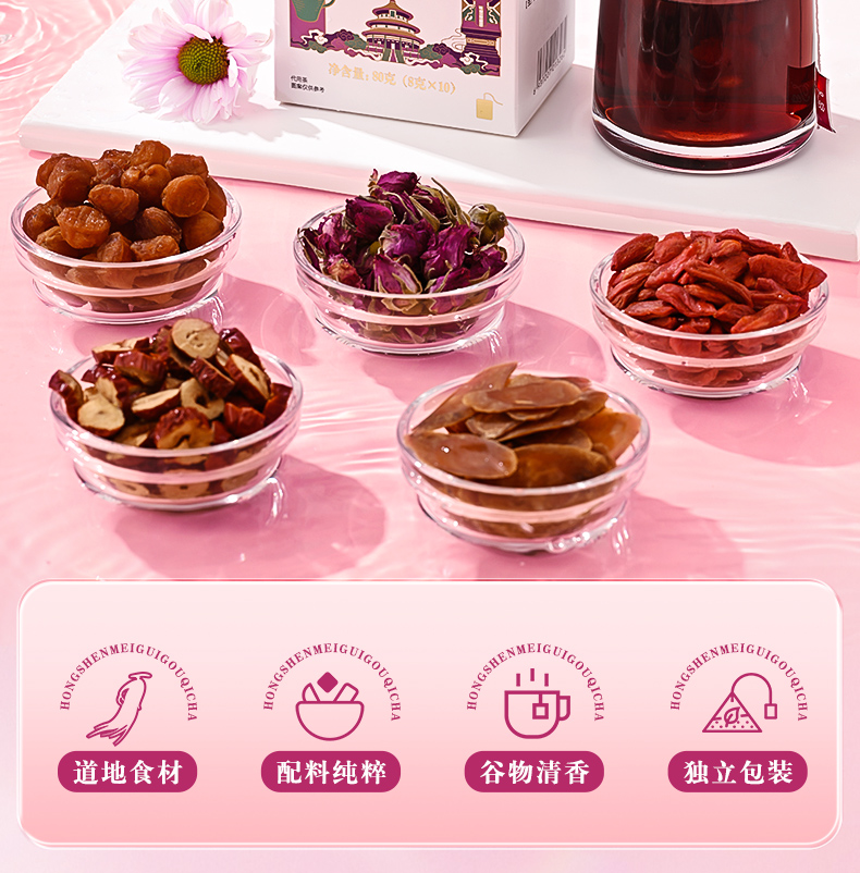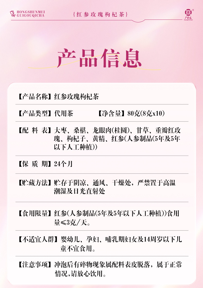 广誉远 红参玫瑰枸杞茶80克(8克×10)