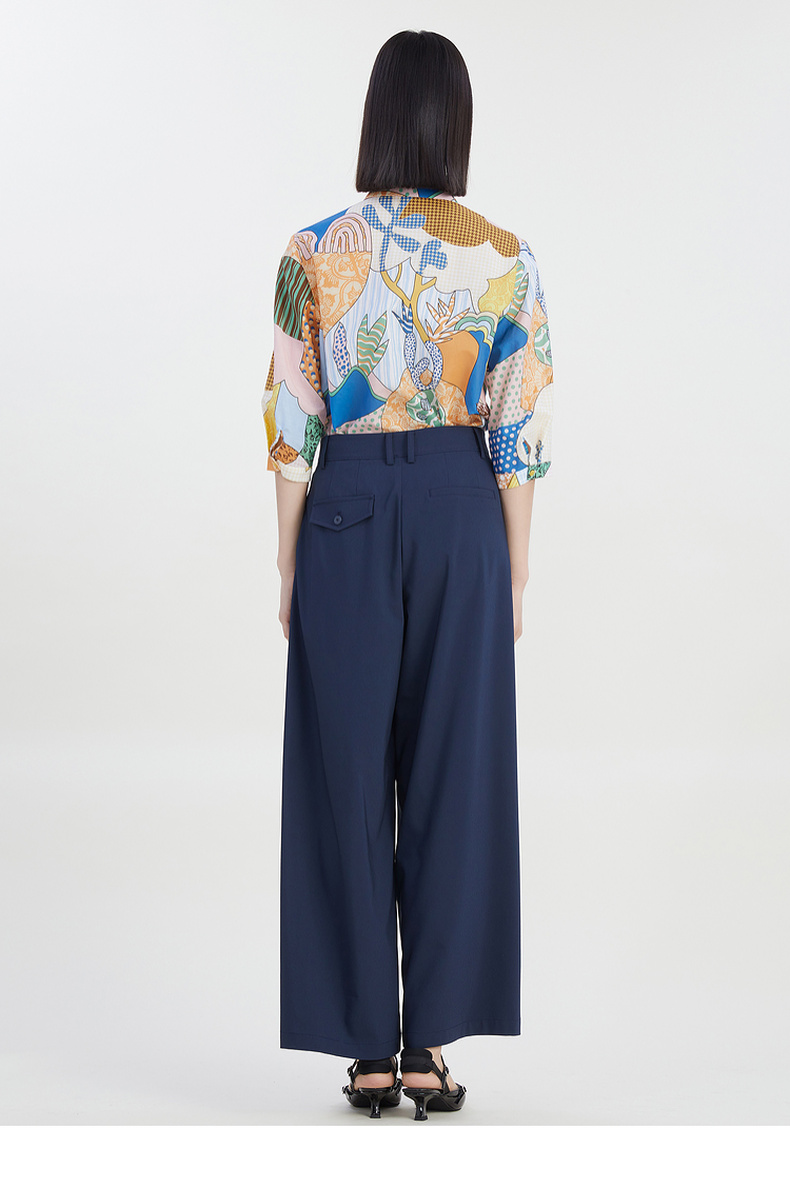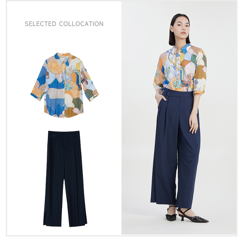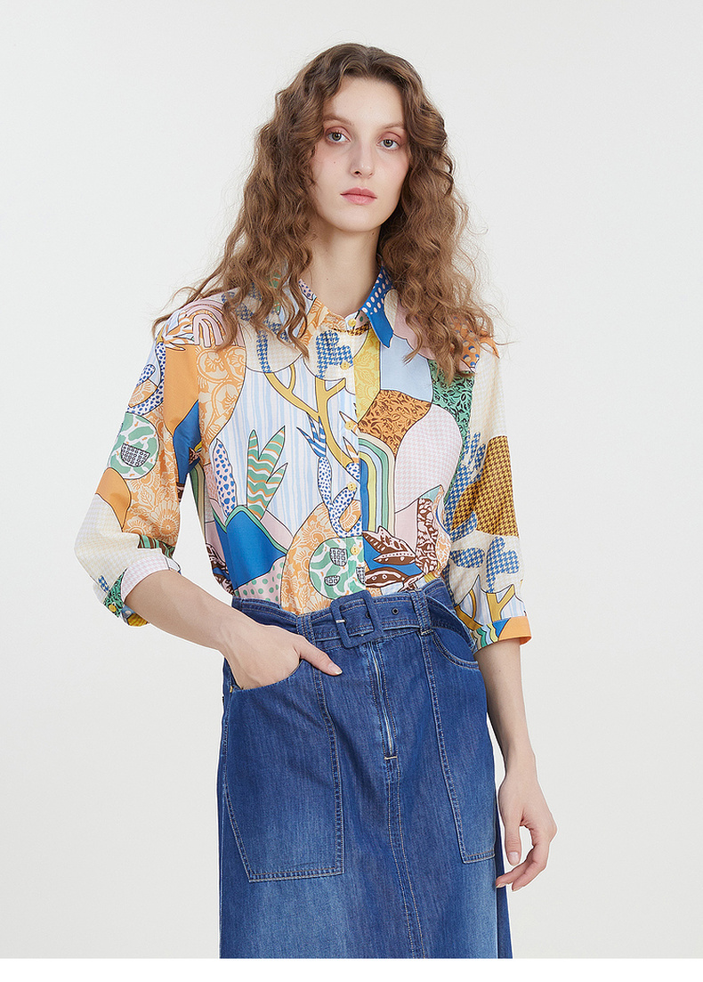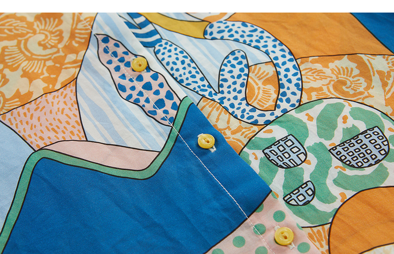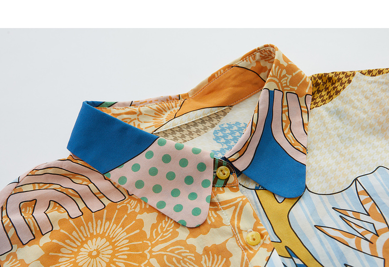 谜底2023夏季新款主题花色衬衫七分袖复古宽松花衬衣女232MC0528