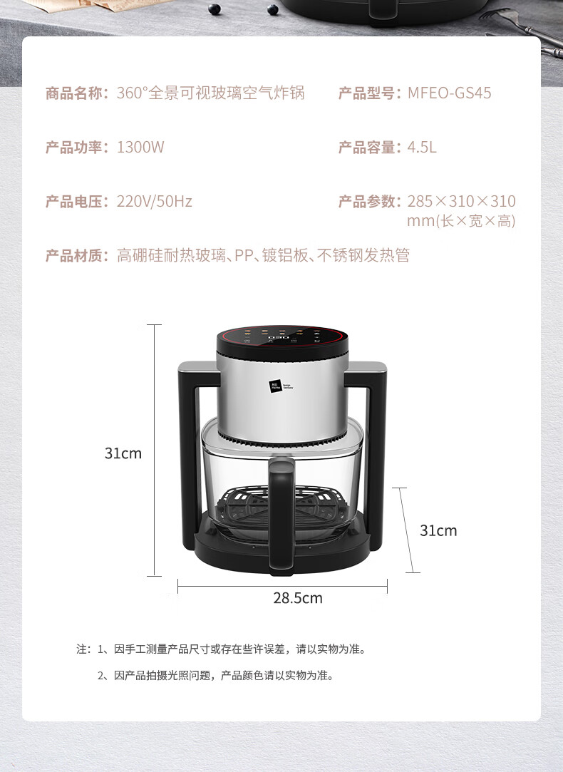 【小家电】米技(Miji Home)米技生活空气炸锅家用多功能烤箱 MFEO-GS45 HF