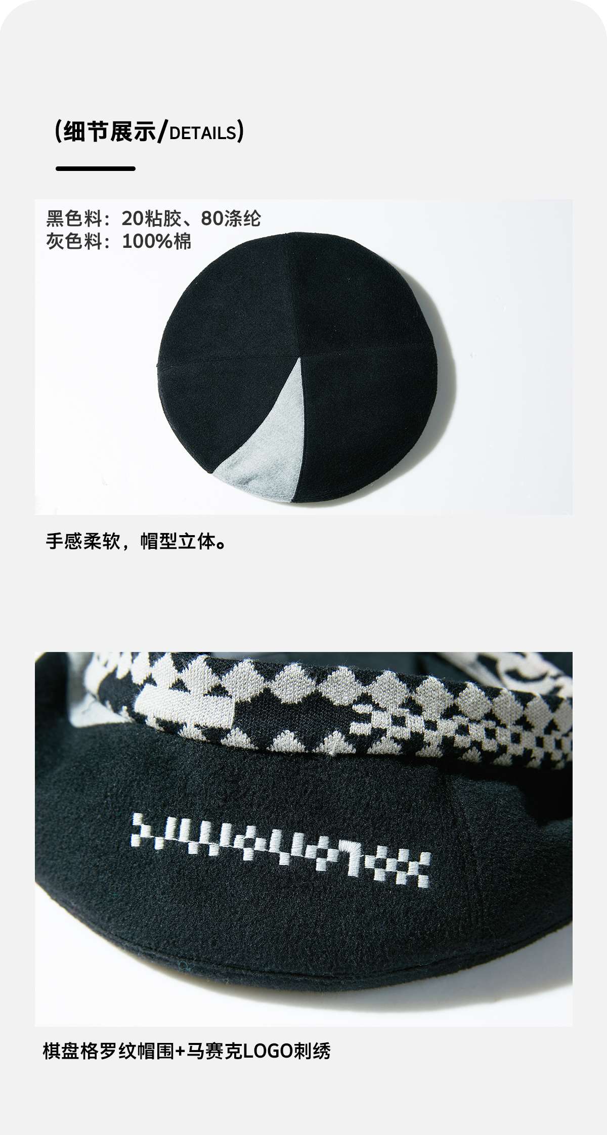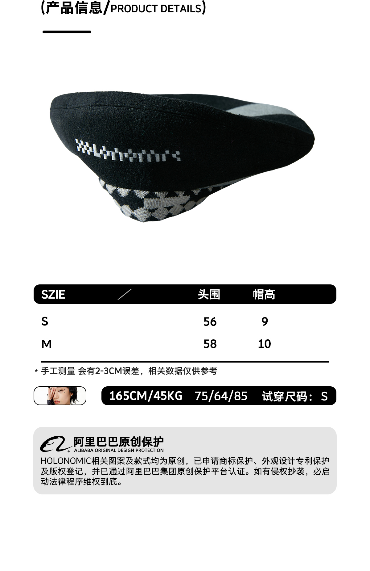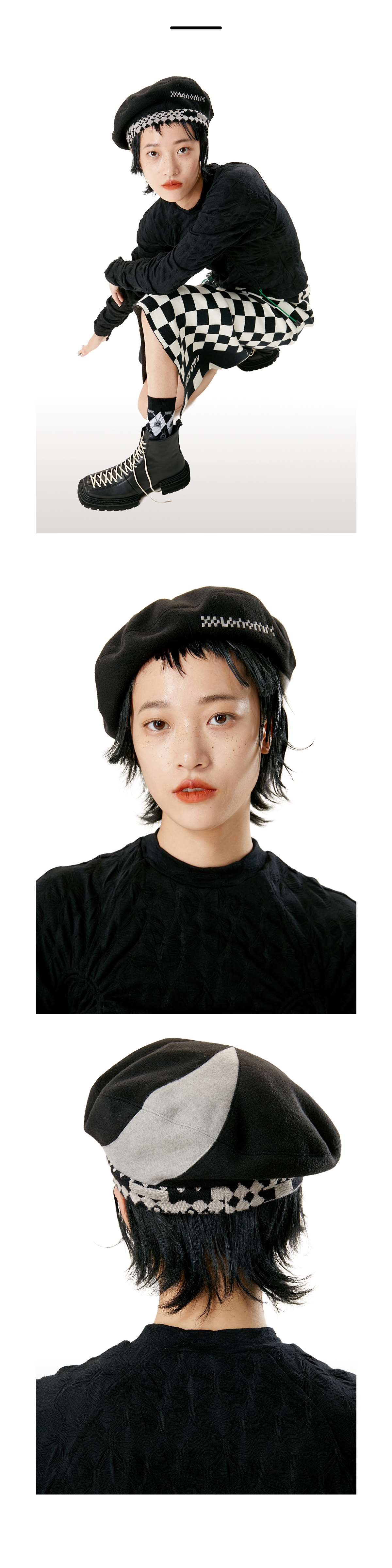 HOLONOMIC 原创设计棋盘格拼接贝雷帽