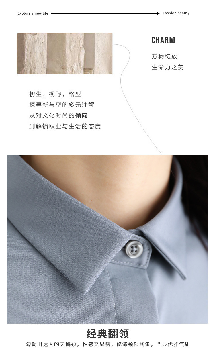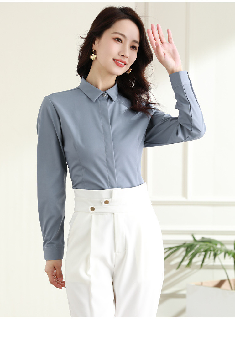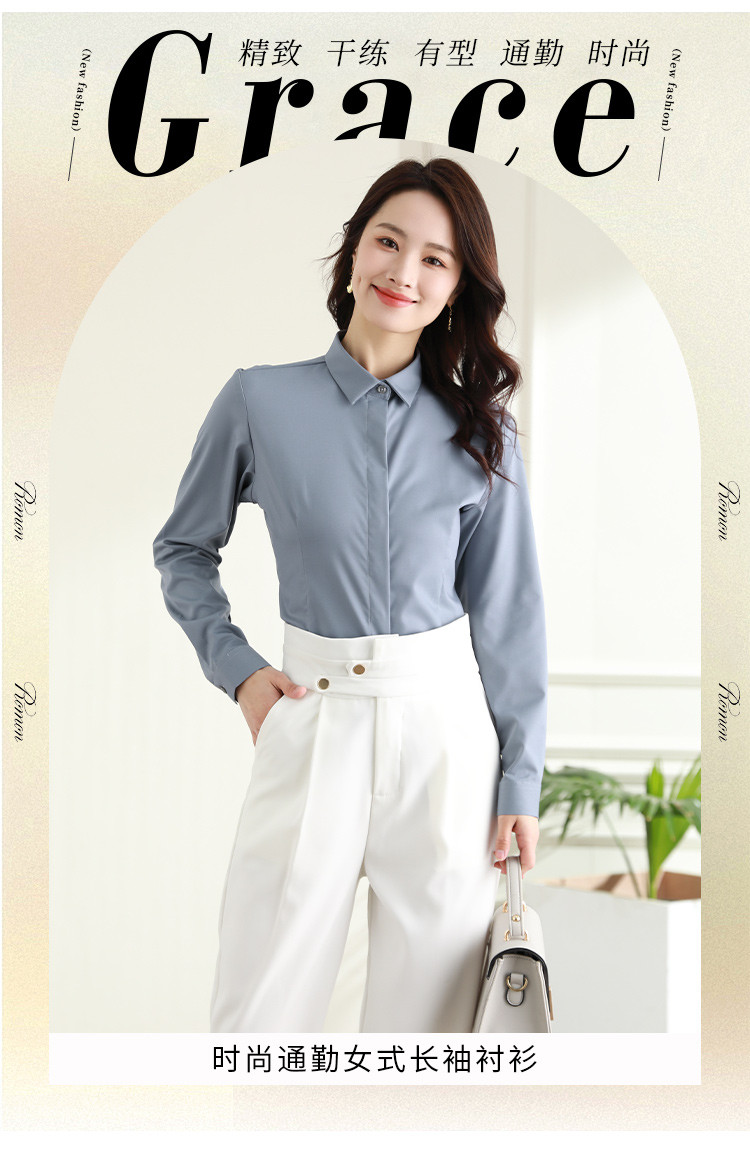 罗蒙春秋女装长袖衬衫女士修身显瘦商务通勤职业工装OL上班衬衣女