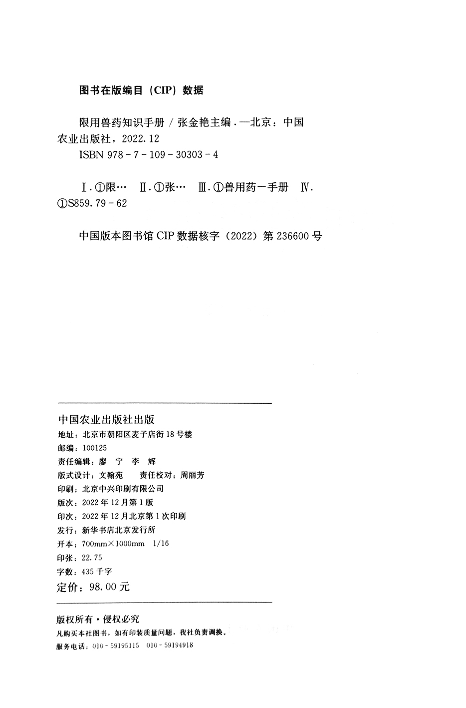 限用兽药知识手册 张金艳 兽药 兽医 30303