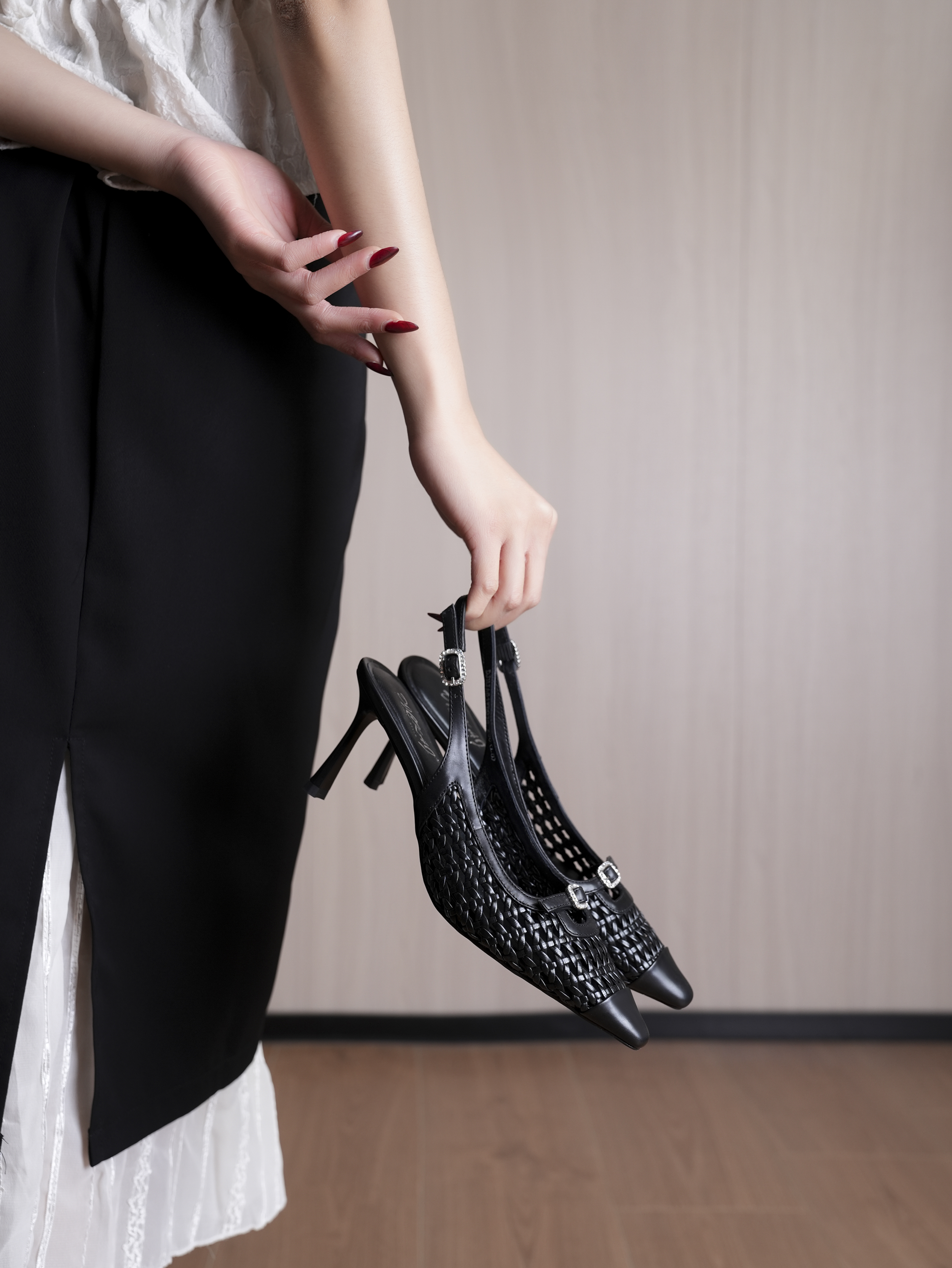 豪麟名鞋迪嘉女鞋半凉鞋胎牛皮革DJHJA61WB014黑色