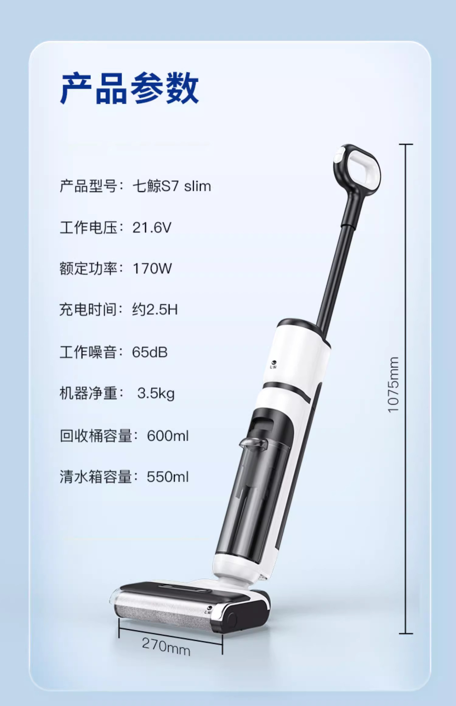 七鲸洗地机S7Slim家用无线云智能贴边防缠绕除菌吸拖洗家用拖地机