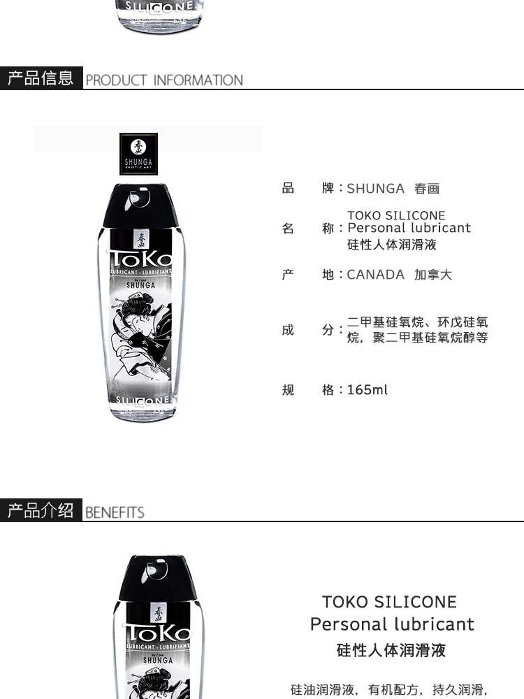 加拿大原装进口SHUNGA春画 硅基润滑油165ml Toko Silicone