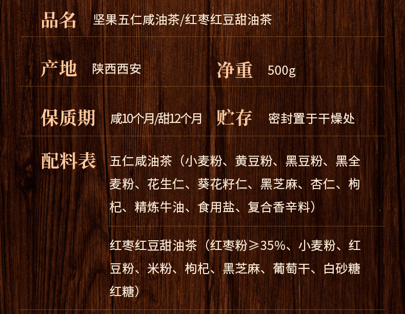 陕西坚果油茶早餐代餐粉五仁咸红枣多口味500g*2袋