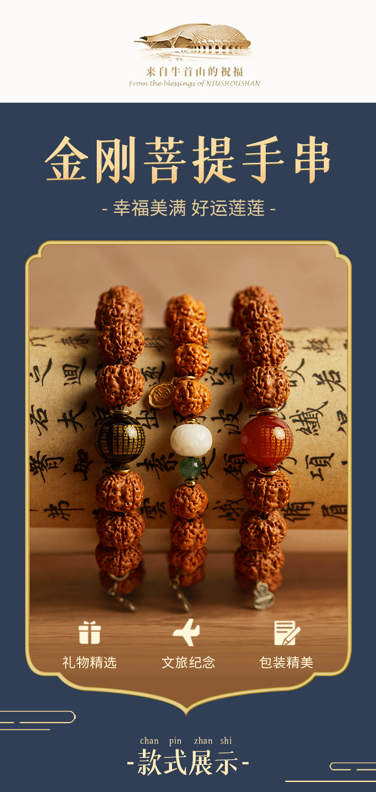 牛首山文创金刚菩提莲花手串雕刻文玩菩提子原籽手链男女礼物