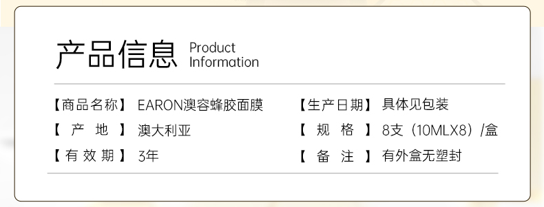 eaoron澳容 蜂毒涂抹面膜 8支【不足200元订单,默认顺丰快递到付】