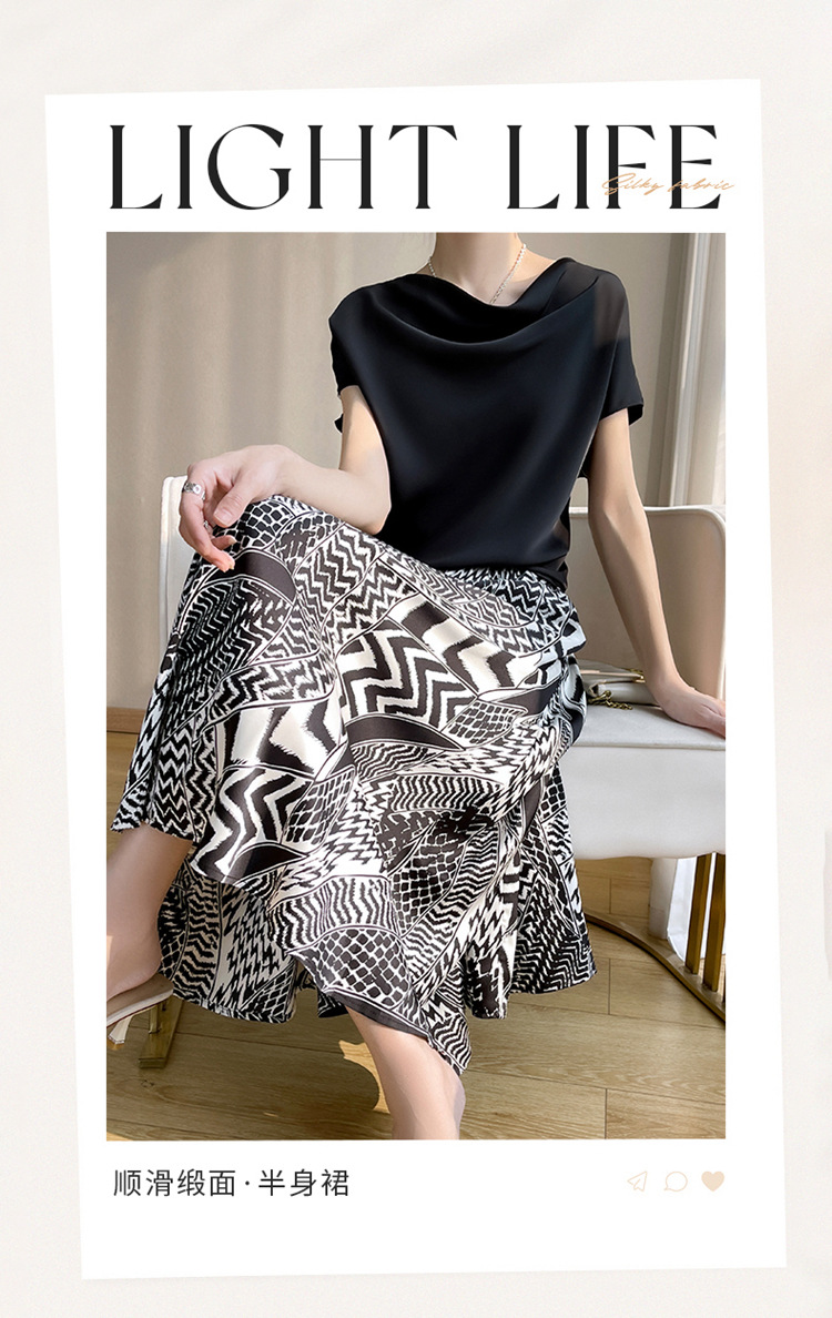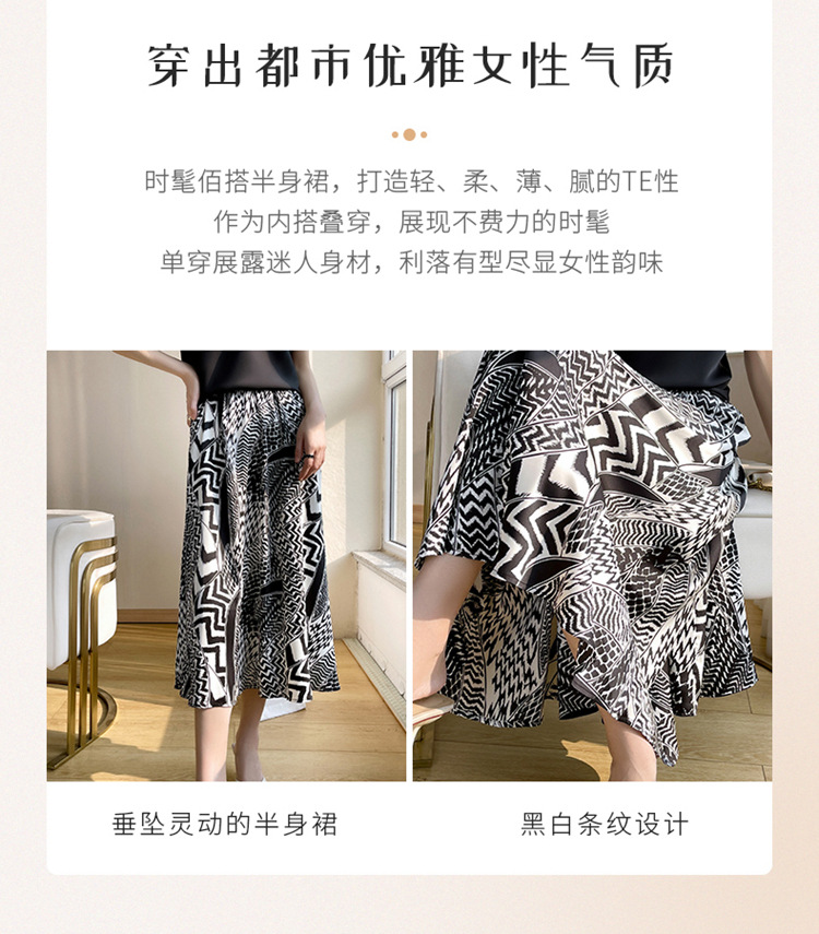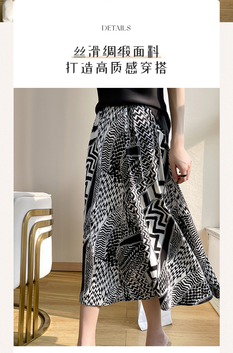 新款印花冰丝半身裙女夏季中长款宽松显瘦薄A字大摆裙子2025女士百搭裙子