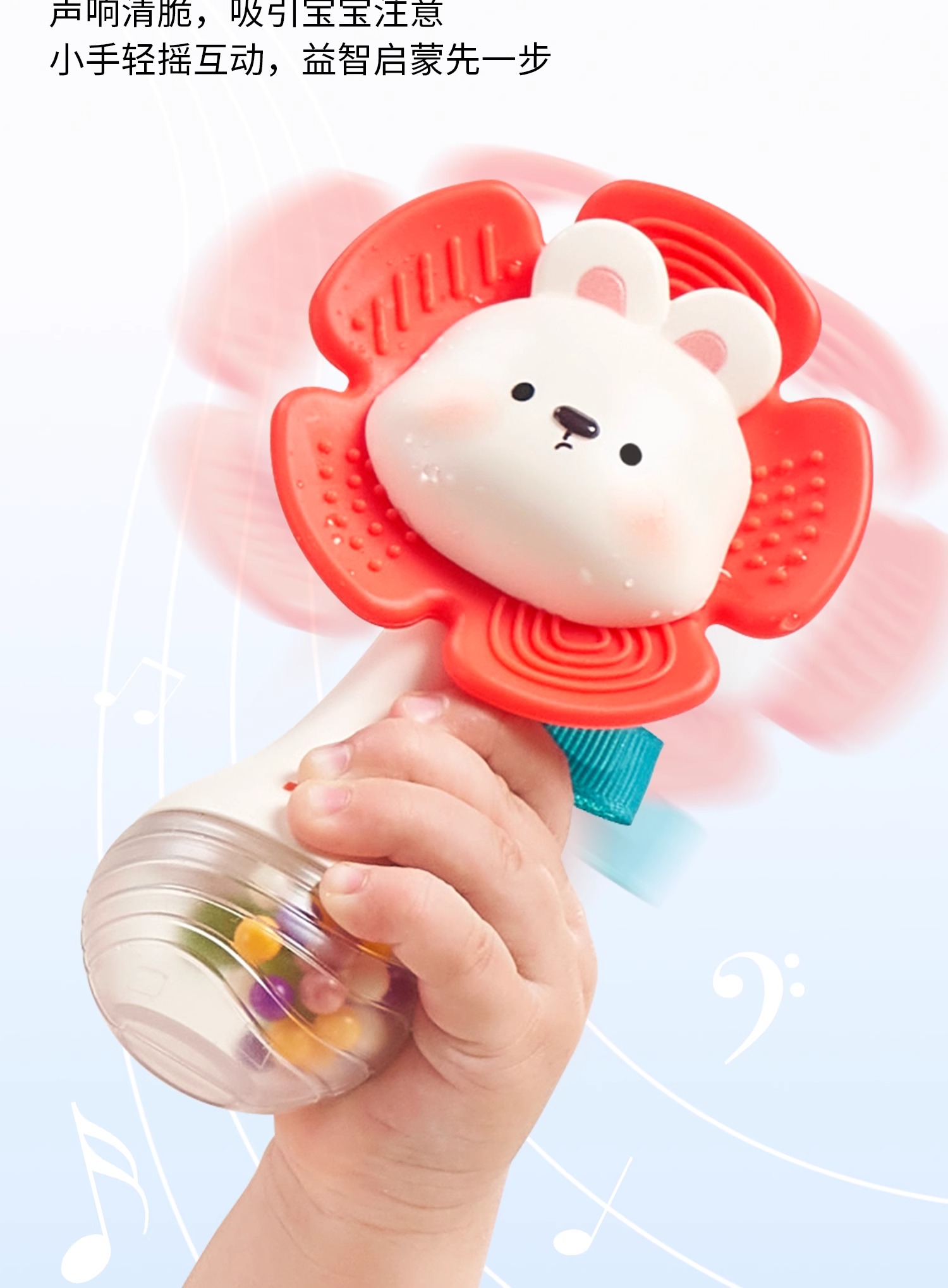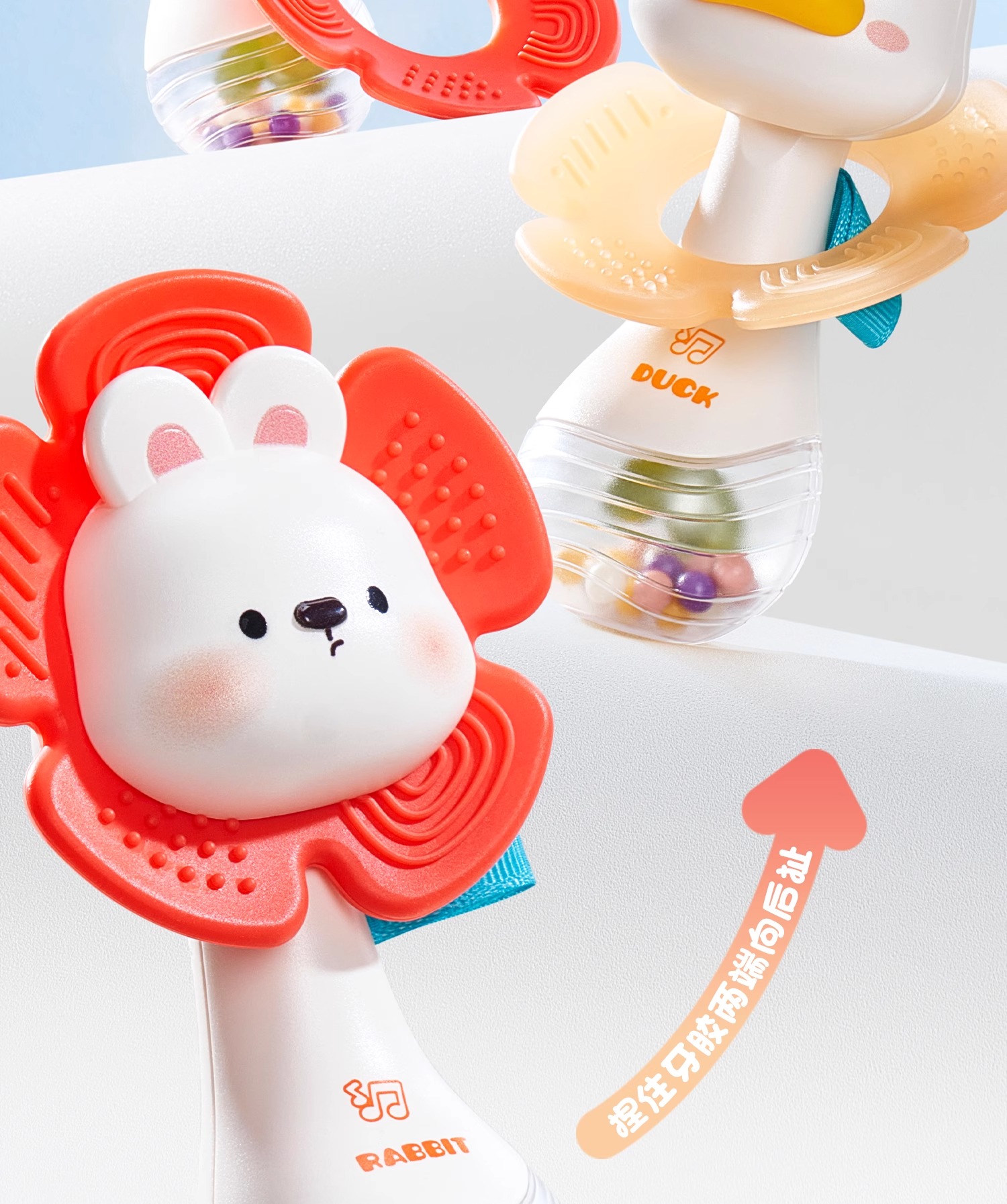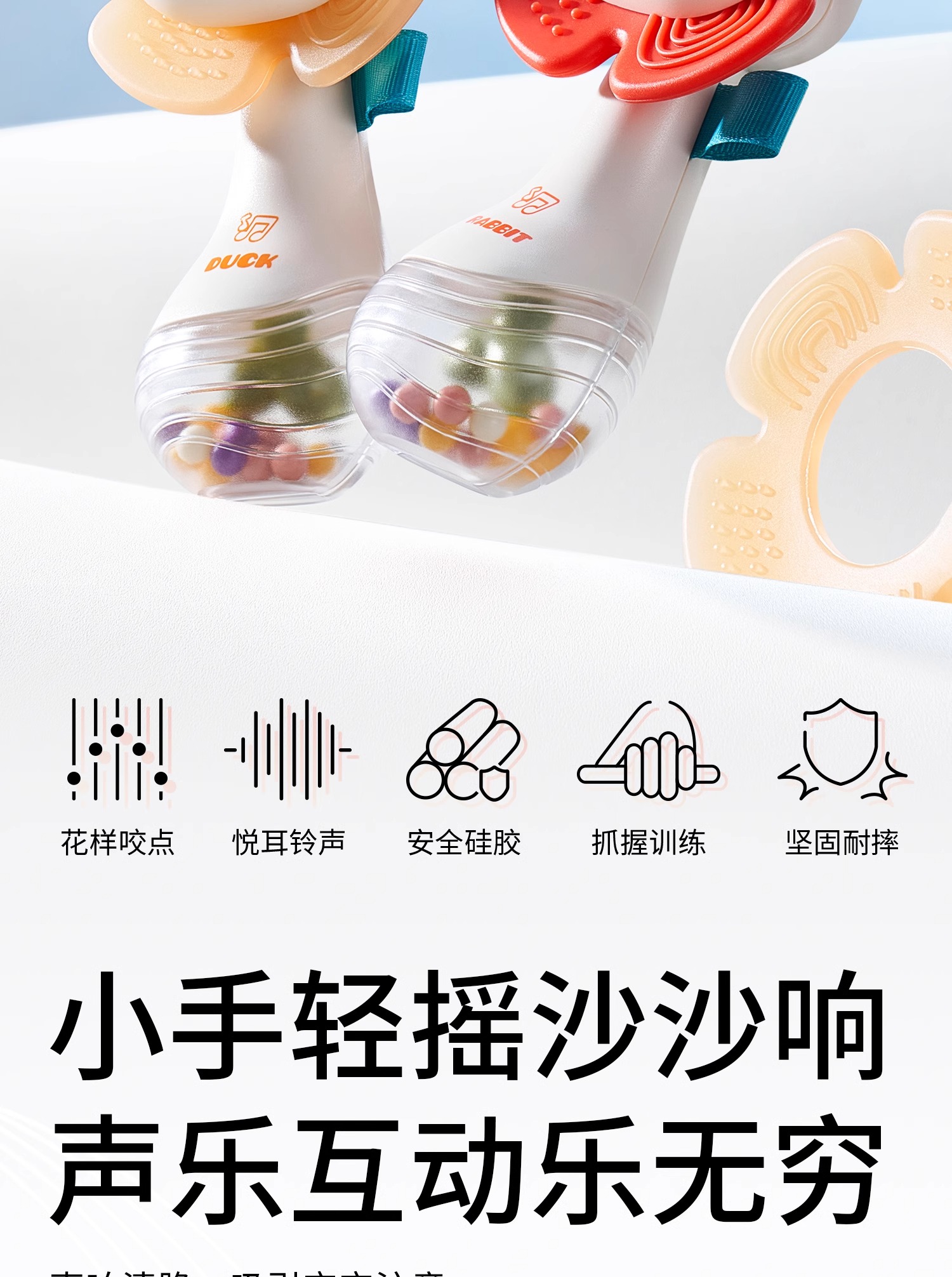 科巢婴儿手摇铃玩具沙锤可咬牙胶0-1岁宝宝益智抓握训练3-6月幼儿