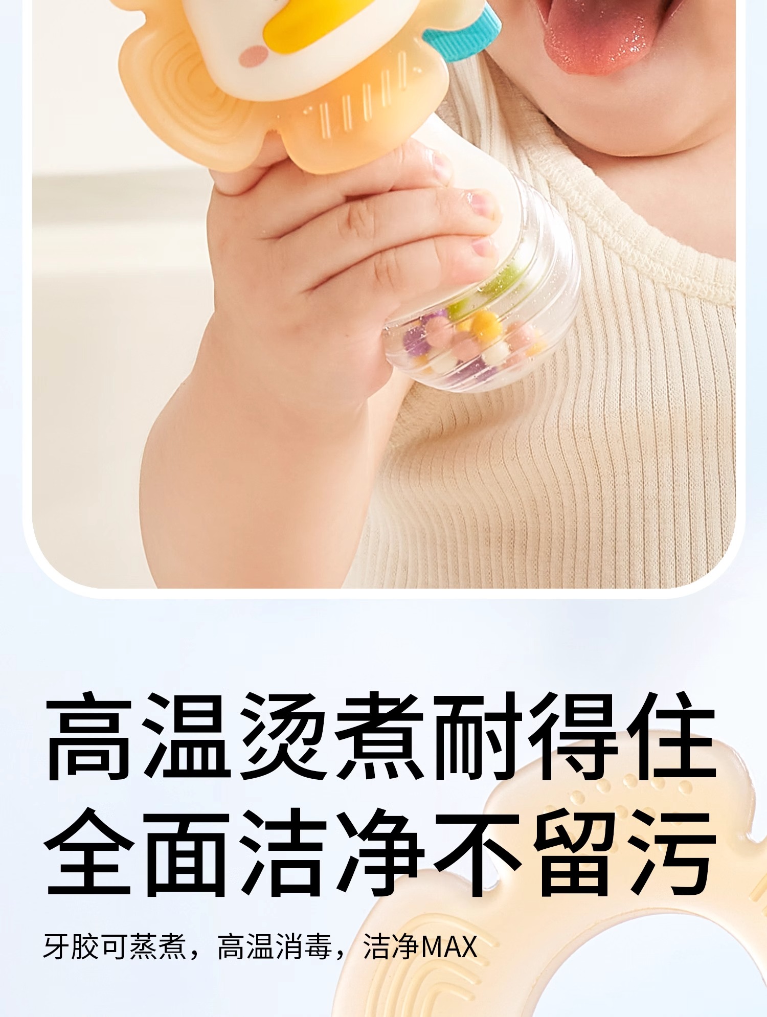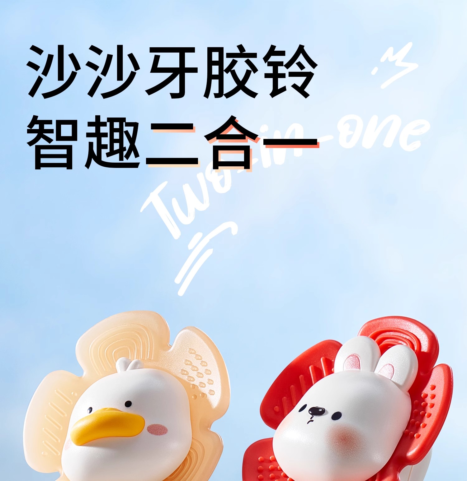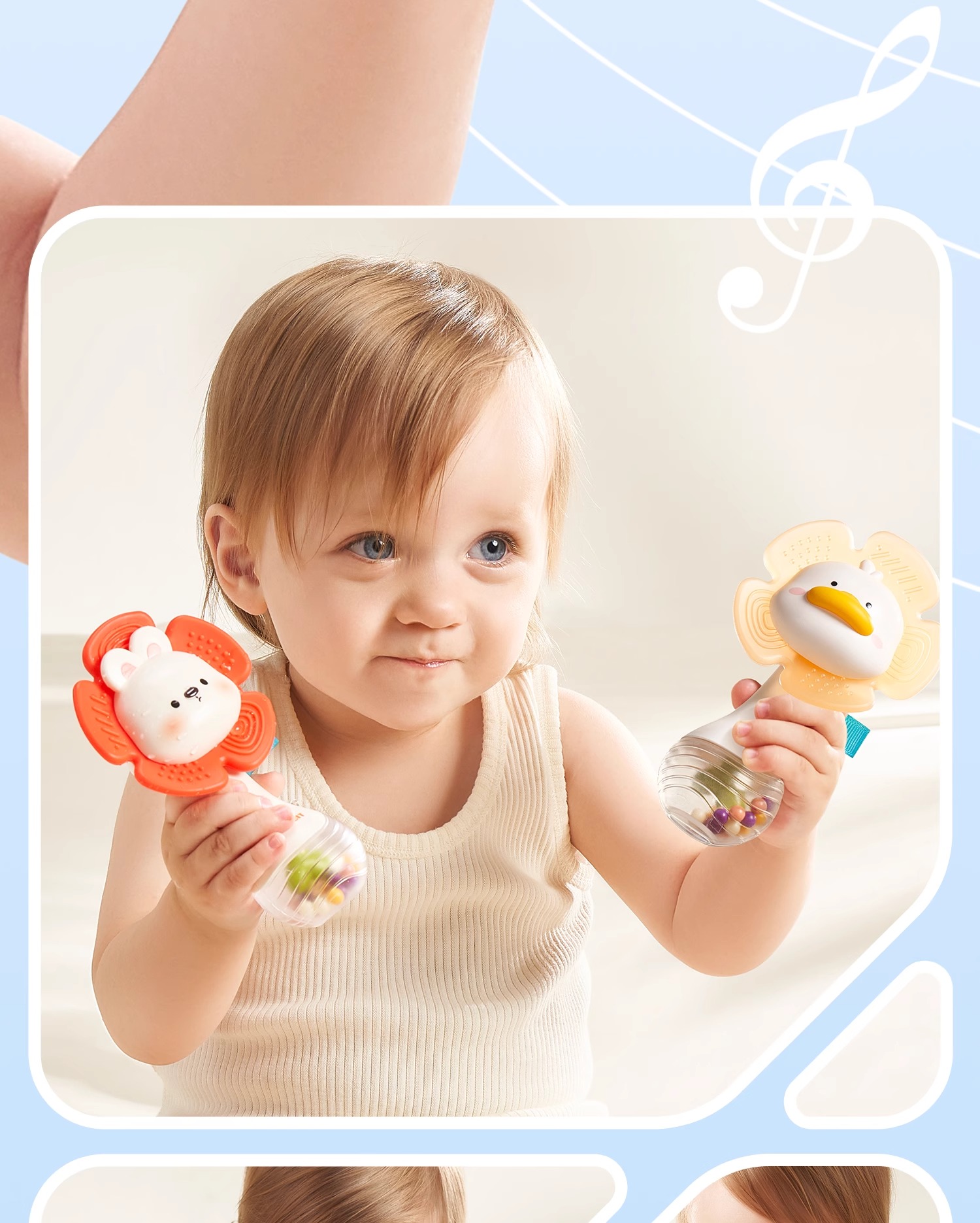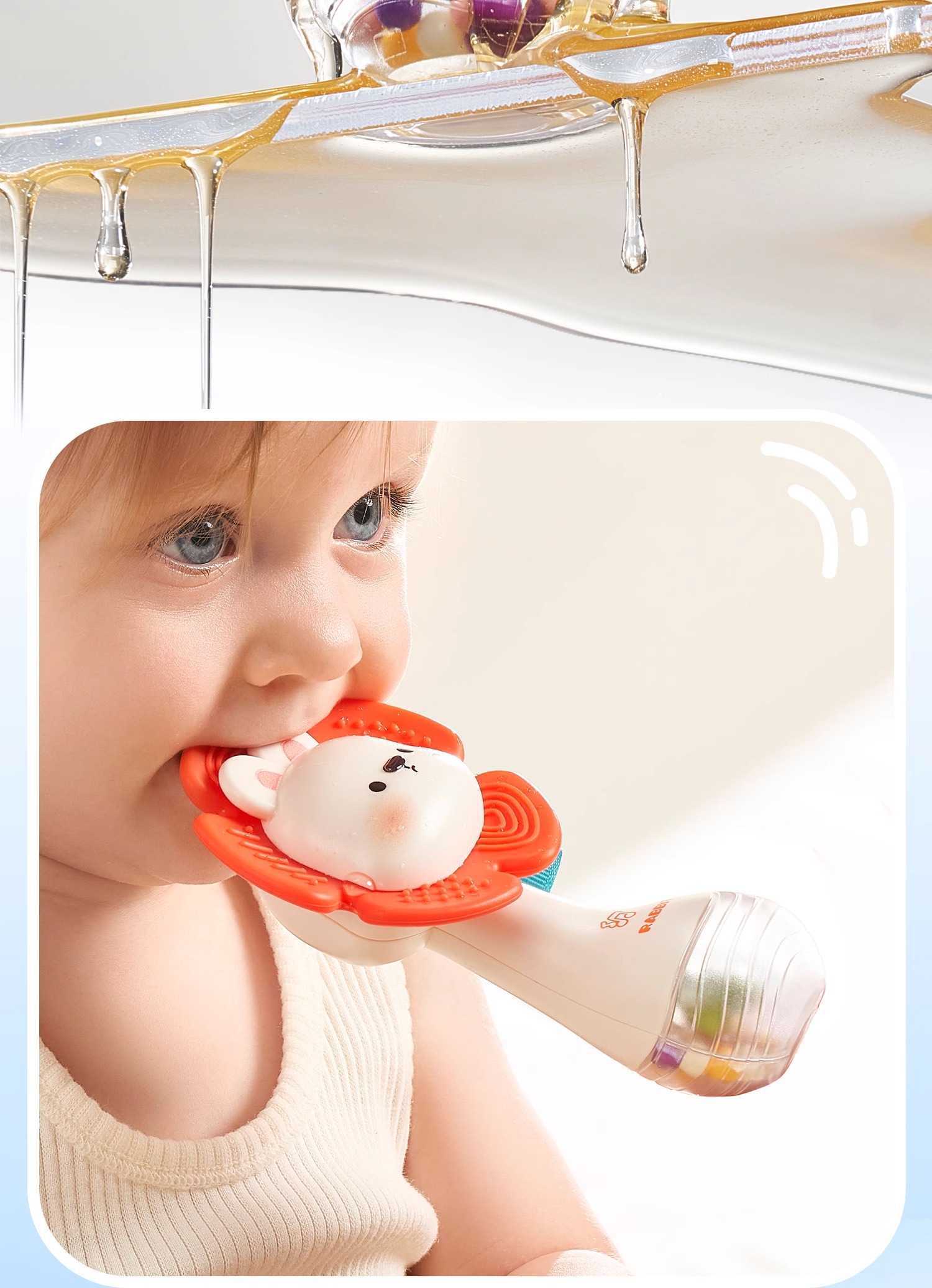 科巢婴儿手摇铃玩具沙锤可咬牙胶0-1岁宝宝益智抓握训练3-6月幼儿