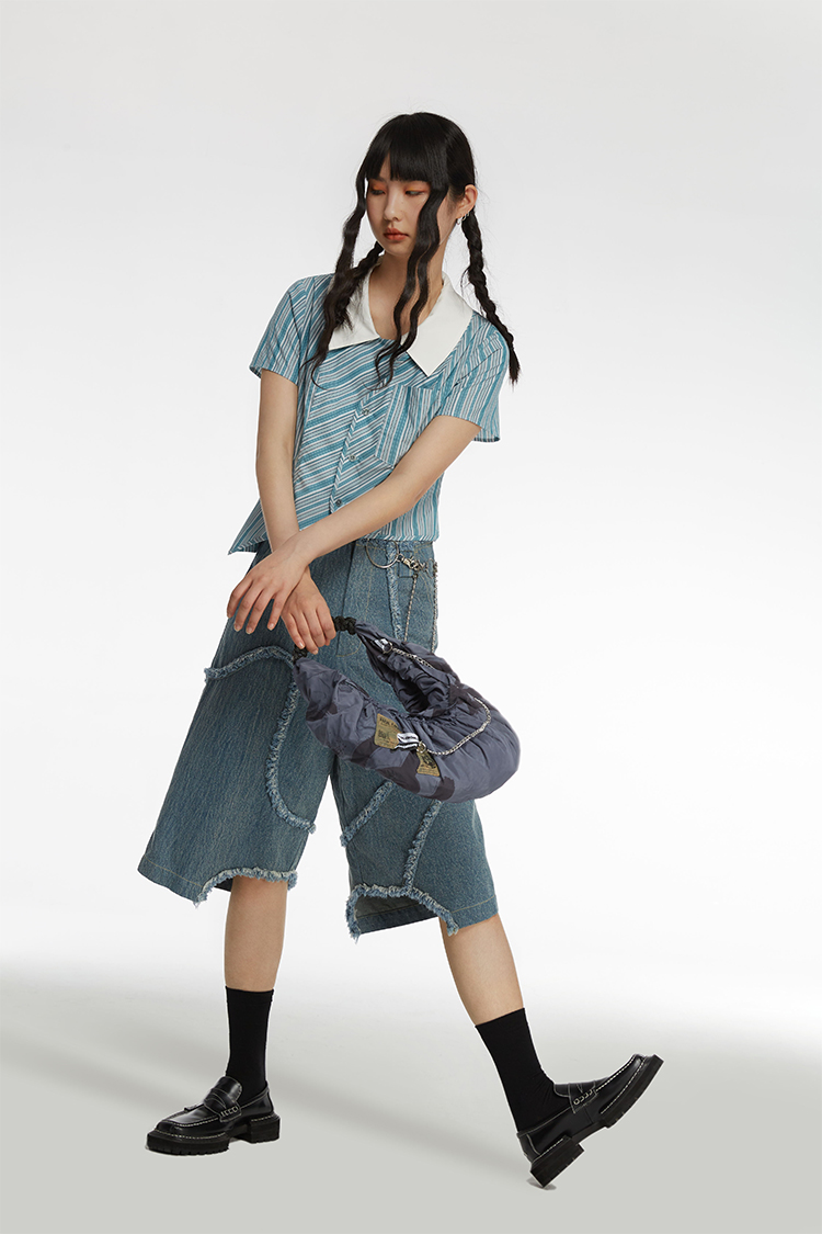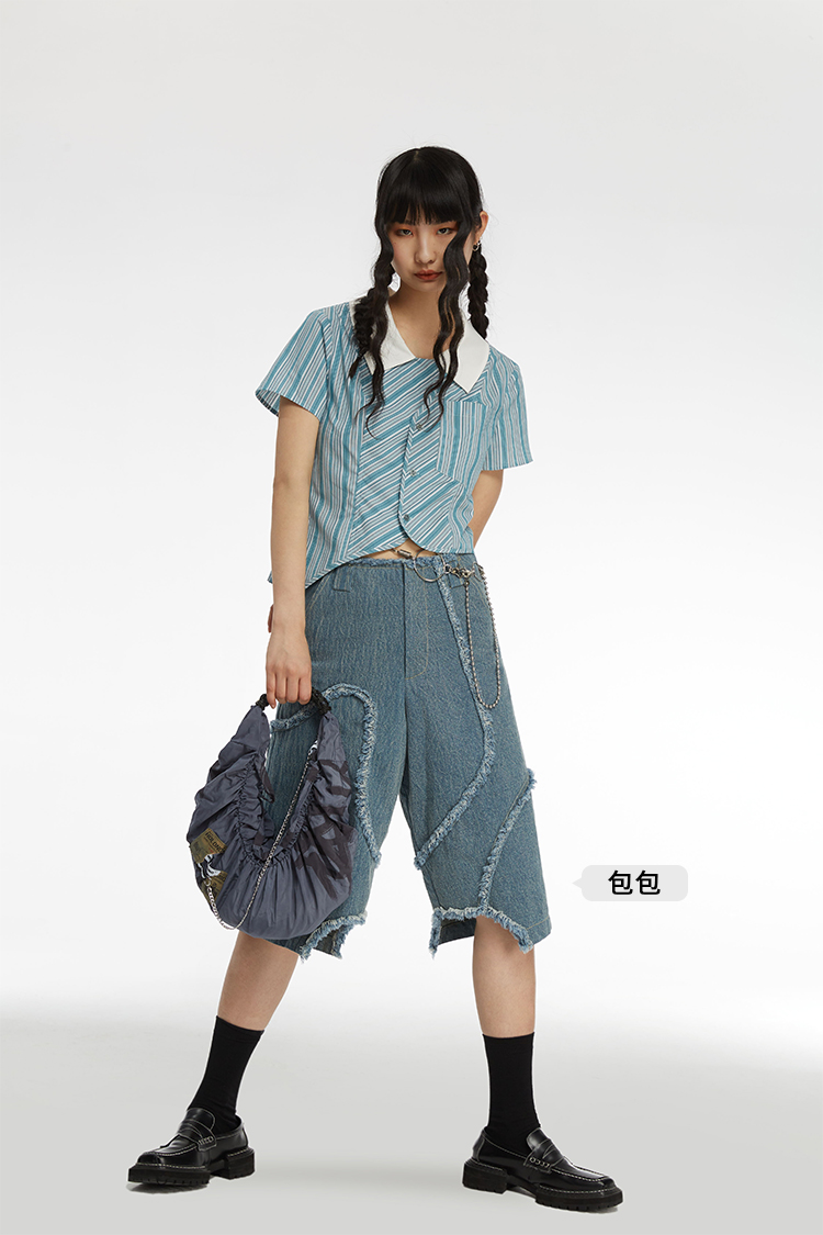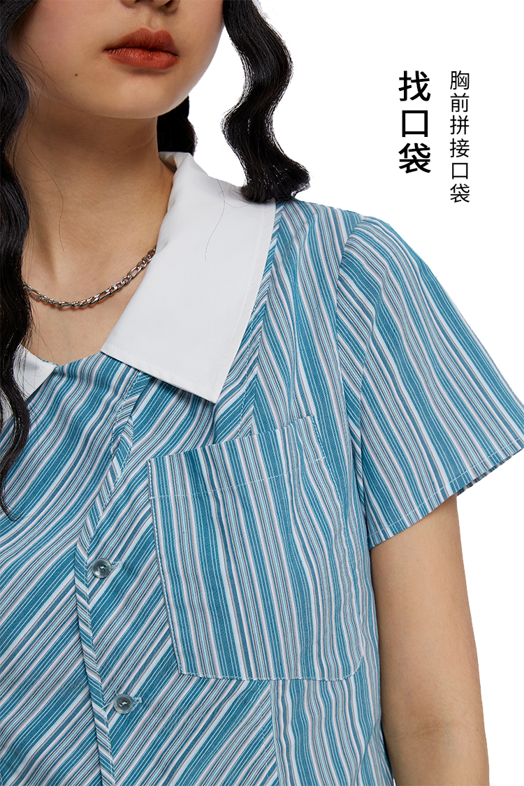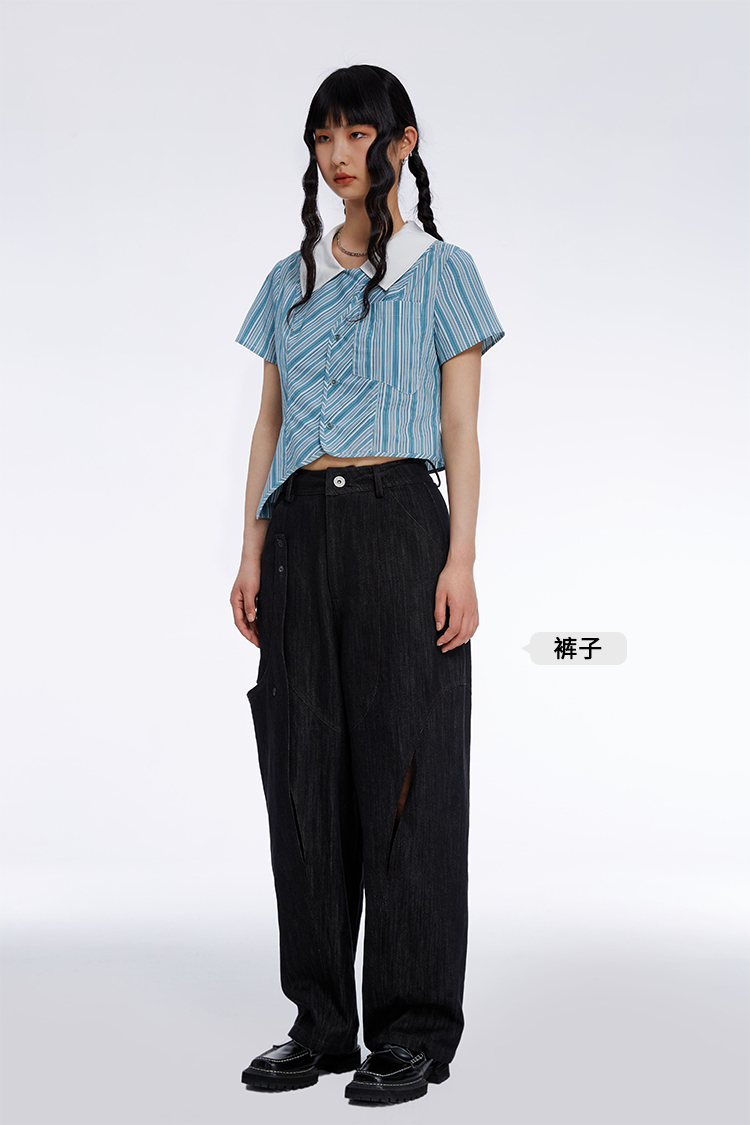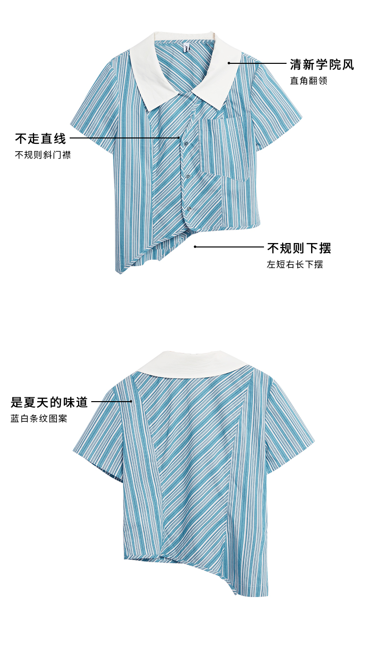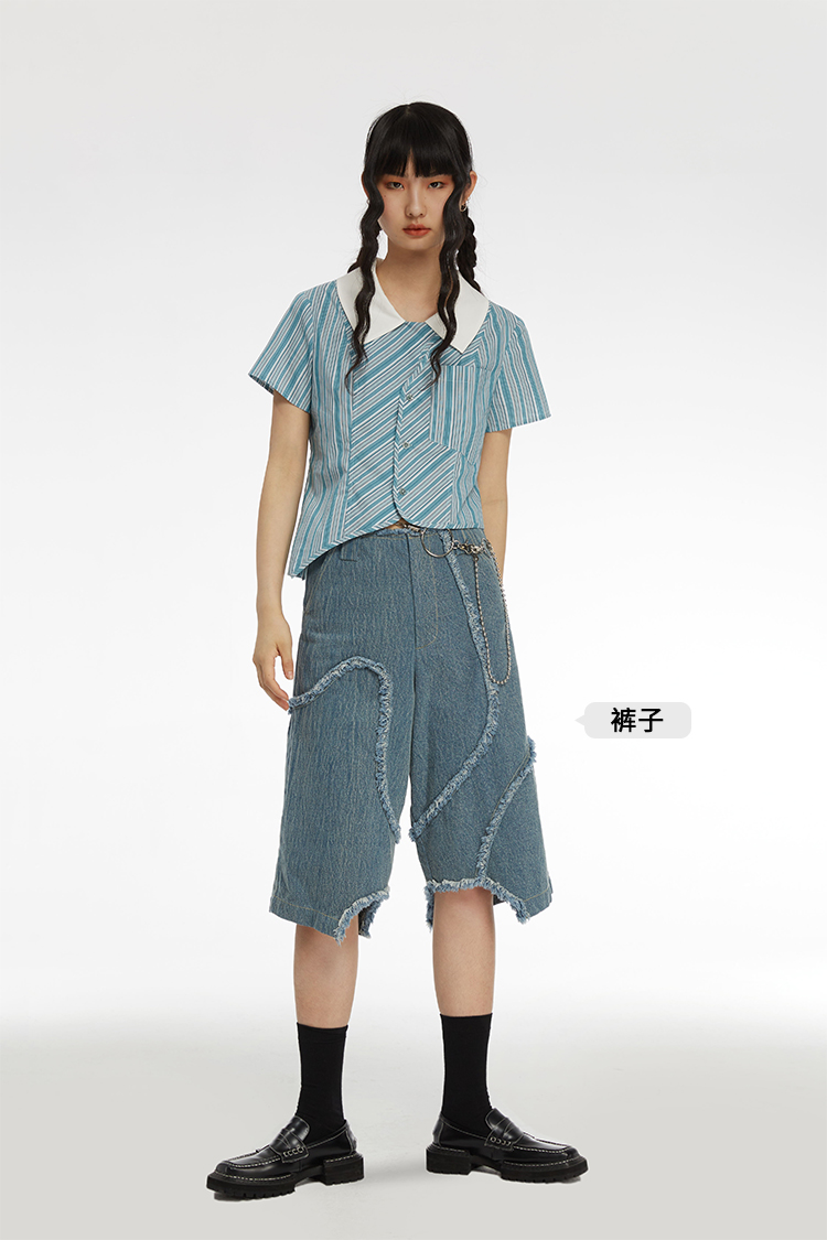 HOLONOMIC 原创不规则短款设计感小众条纹翻领衬衫
