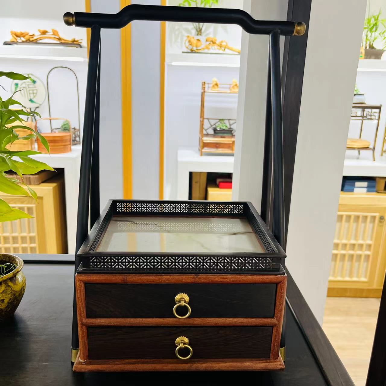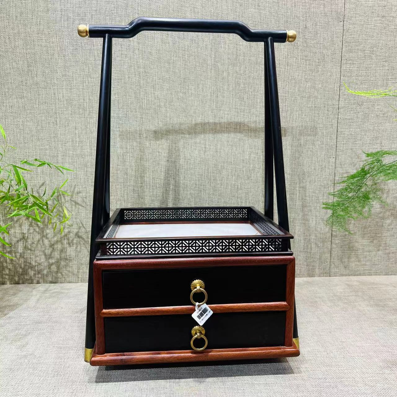 材质:紫光檀镶酸枝,黄铜