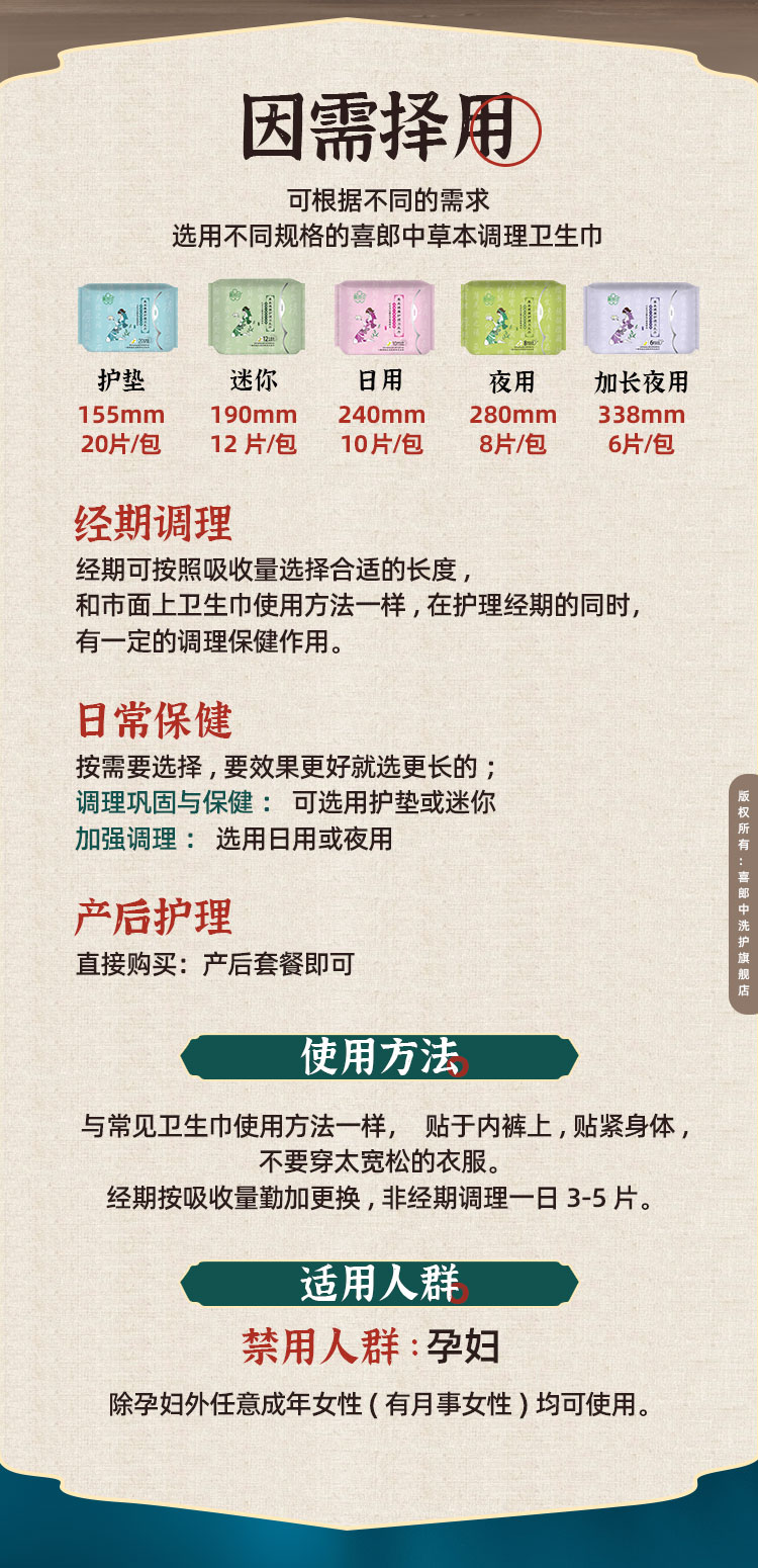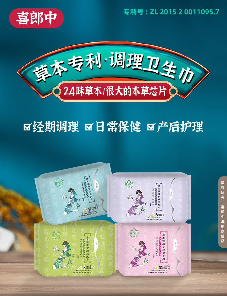 喜郎中迷你卫生巾正品艾草护垫女非纯棉去异味止痒抑菌超薄透气A1