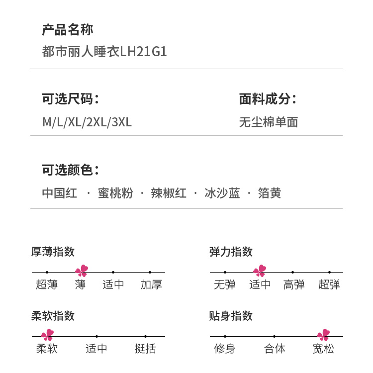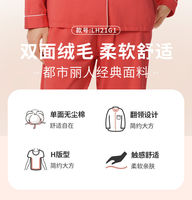 都市丽人好睡好眠女士正价棉质套装无尘棉单面薄家居服长袖睡衣LH21G1