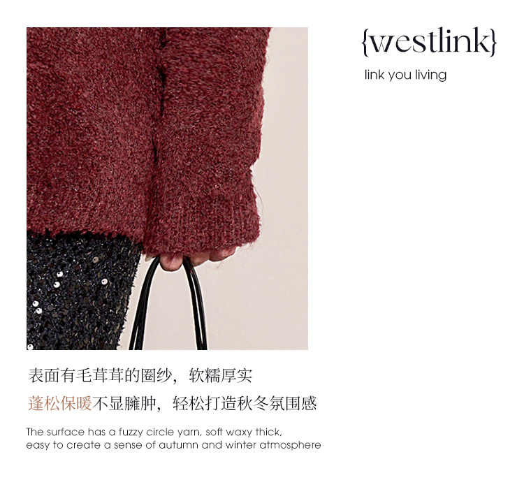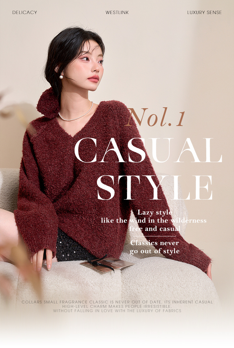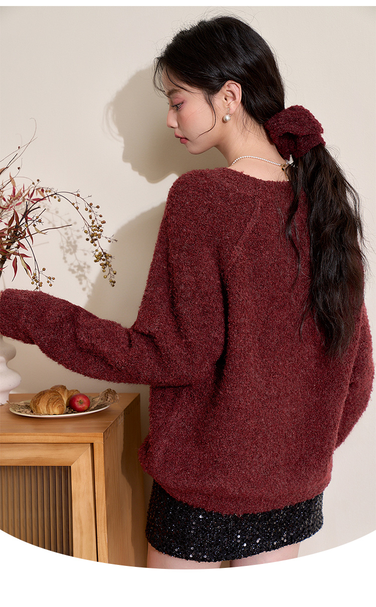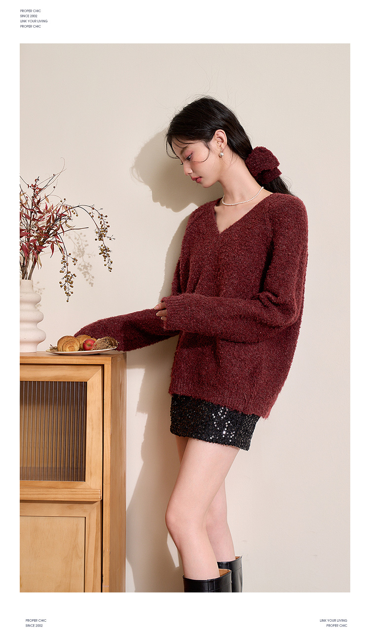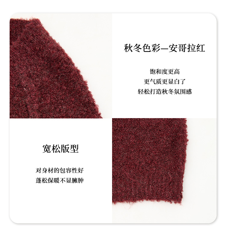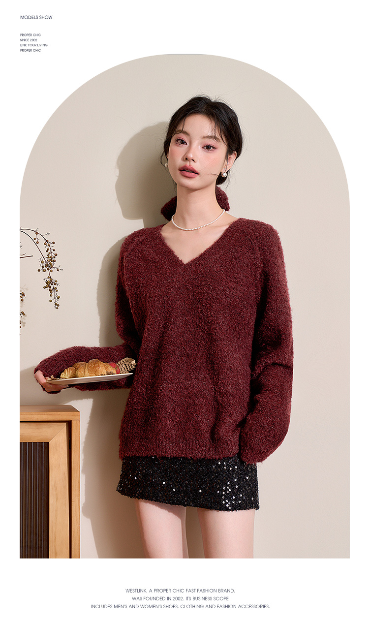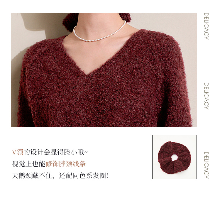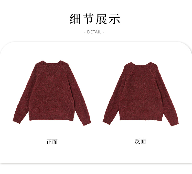 西遇短款V领毛衣女冬季新款温柔纯色慵懒风宽松套头上衣D0043998