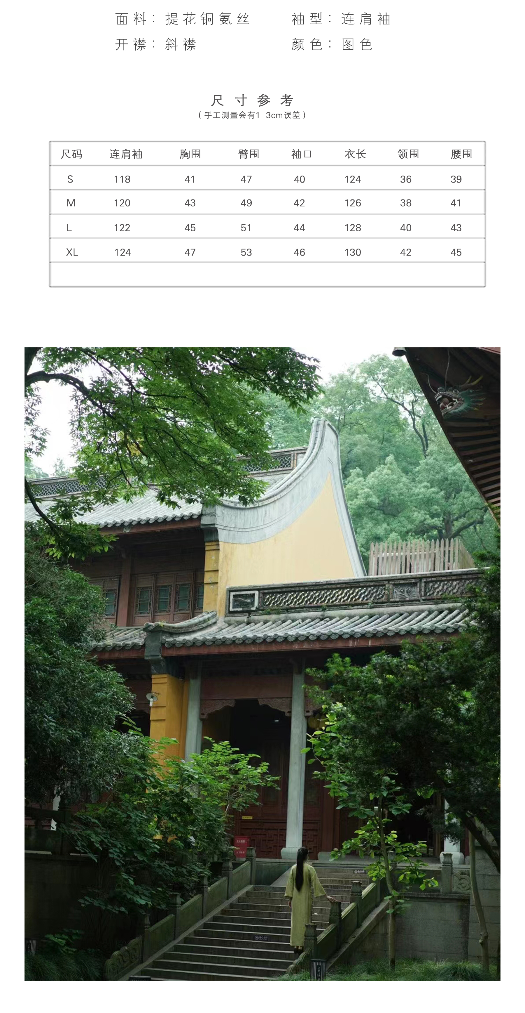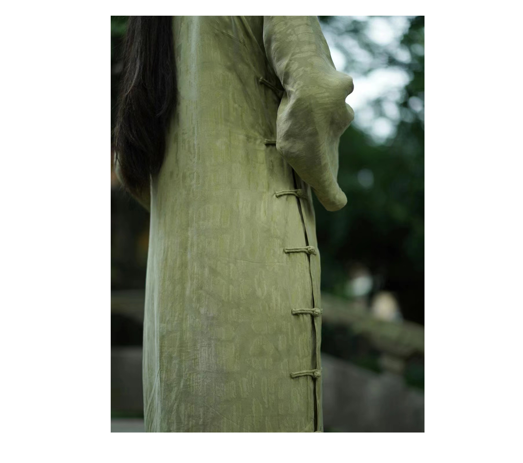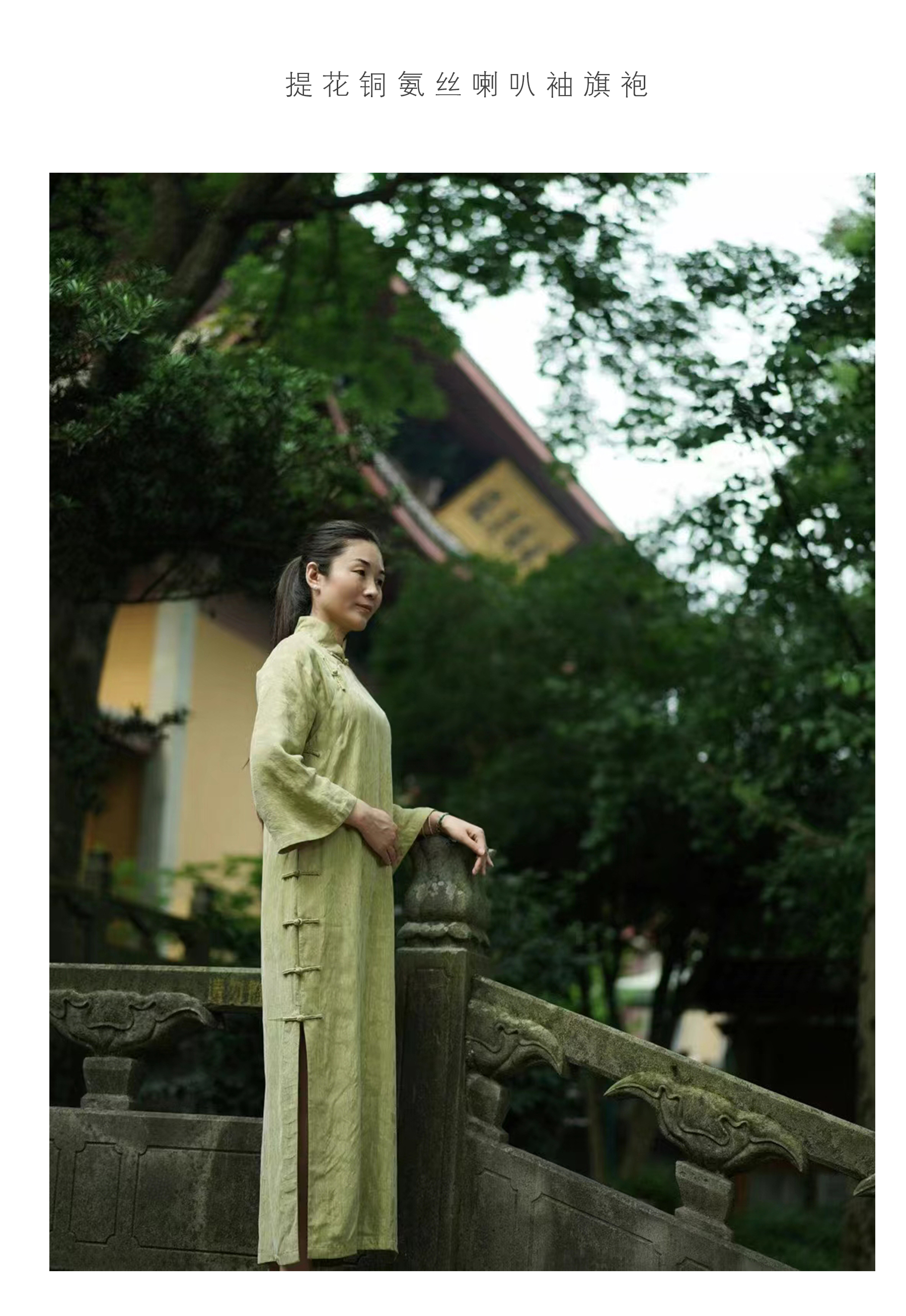 提花铜氨丝喇叭袖旗袍