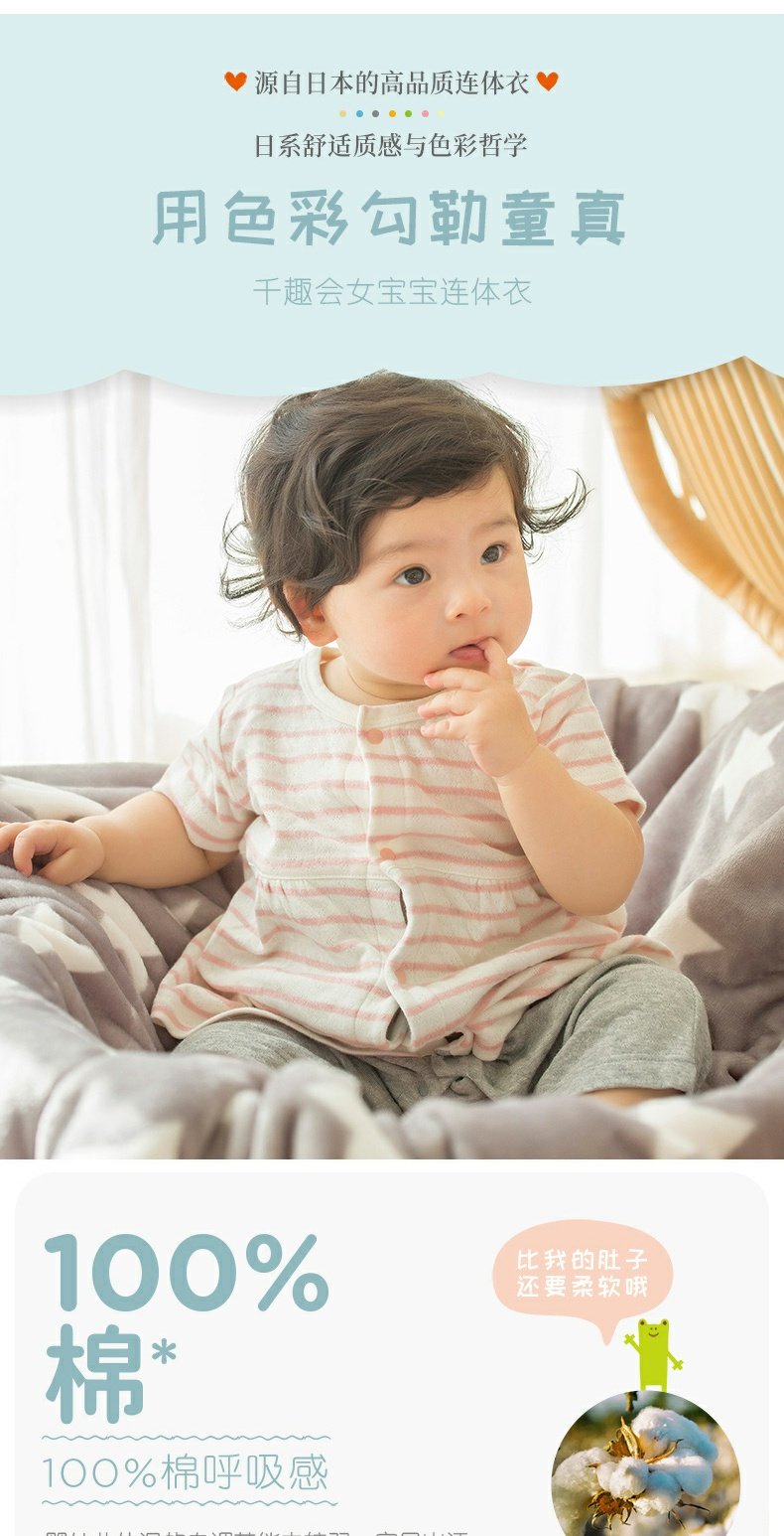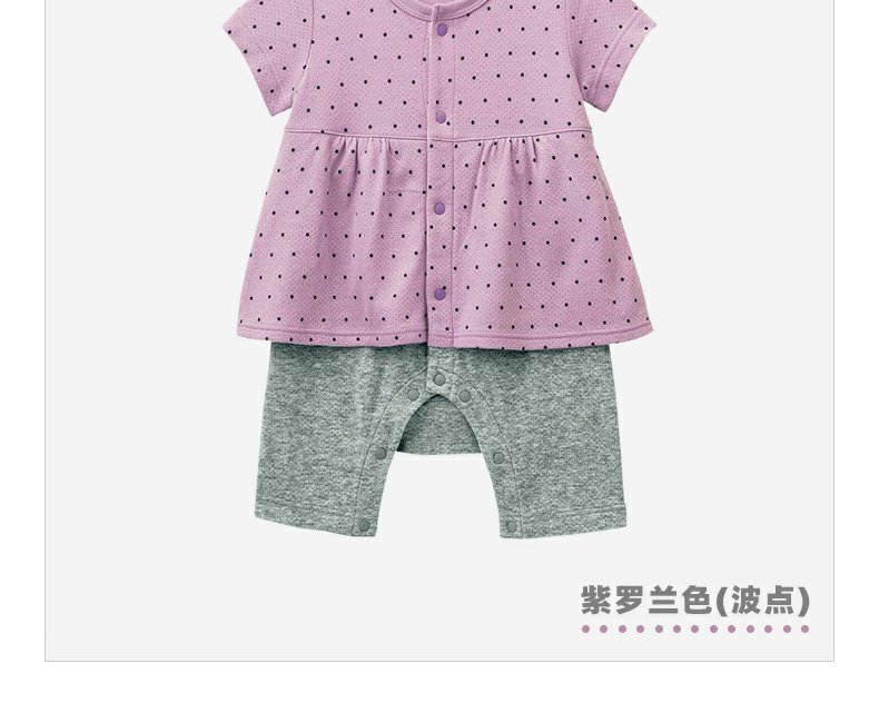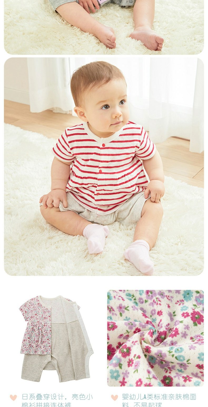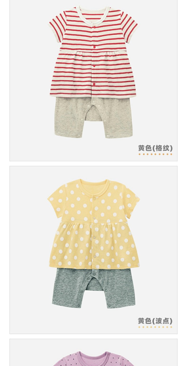 千趣会春夏季婴童附裙哈衣条纹波点纯棉女宝宝短袖连体衣爬服