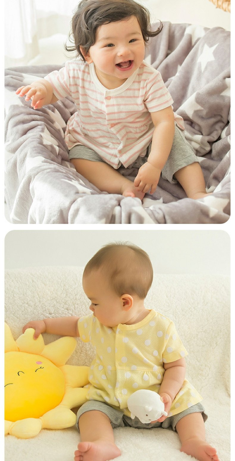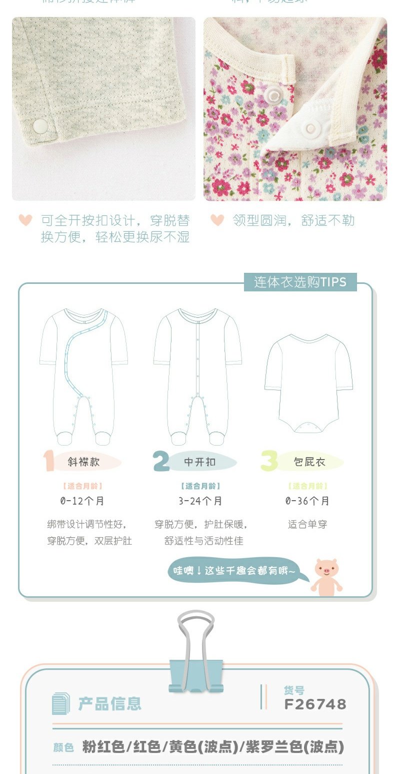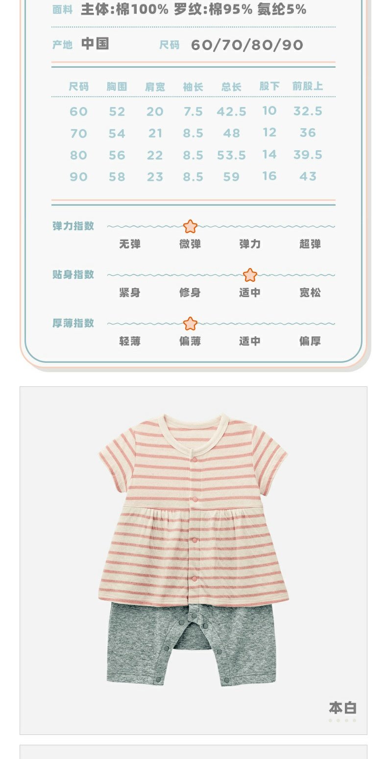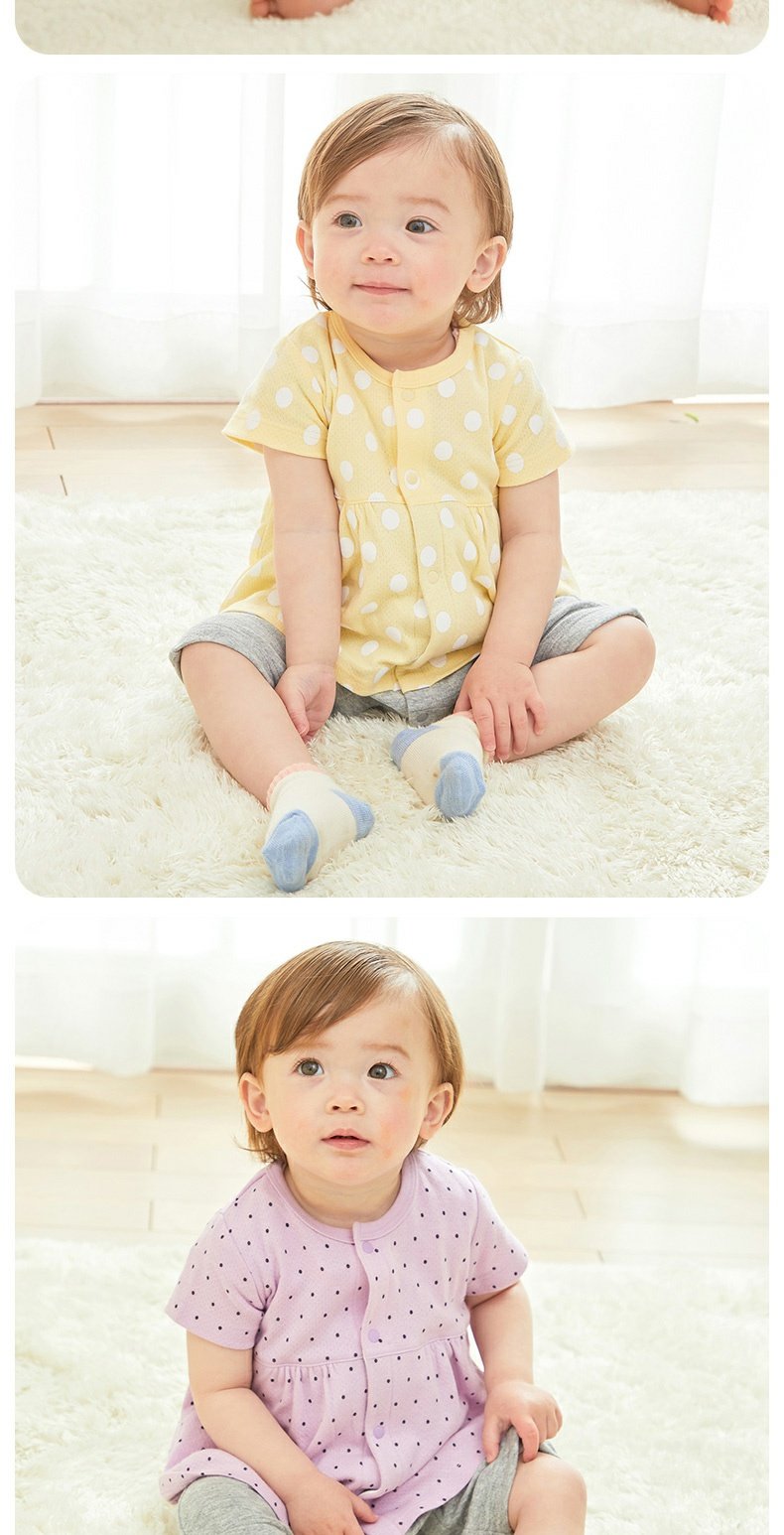 千趣会春夏季婴童附裙哈衣条纹波点纯棉女宝宝短袖连体衣爬服