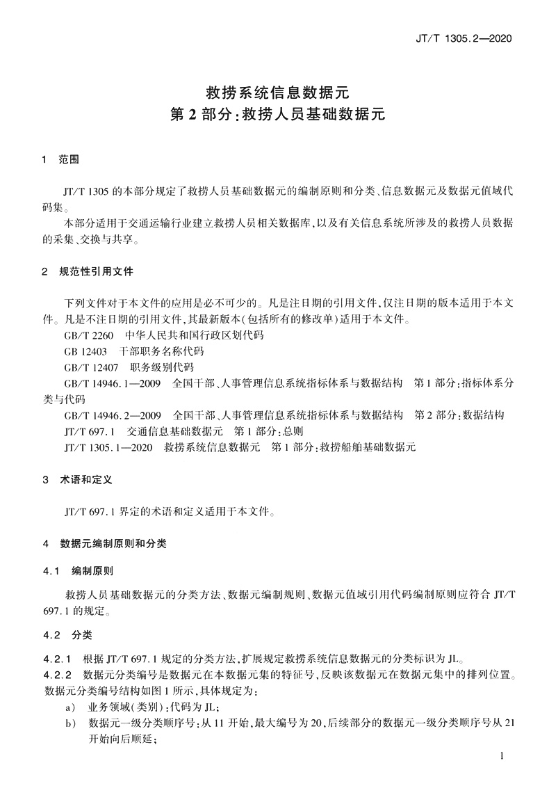 | 救捞系统信息数据元 第2部分:救捞人员基础数据元(JT/T 1305.2—2020) | ||