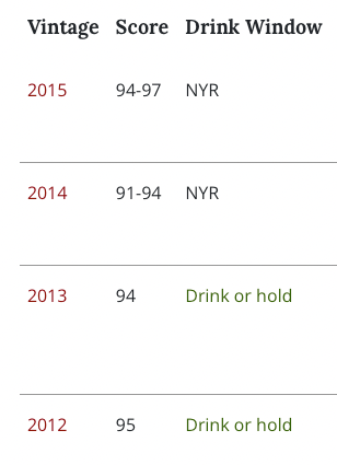 这款获Wine & Spirits Magazine 95分、The Wine Front 95分。