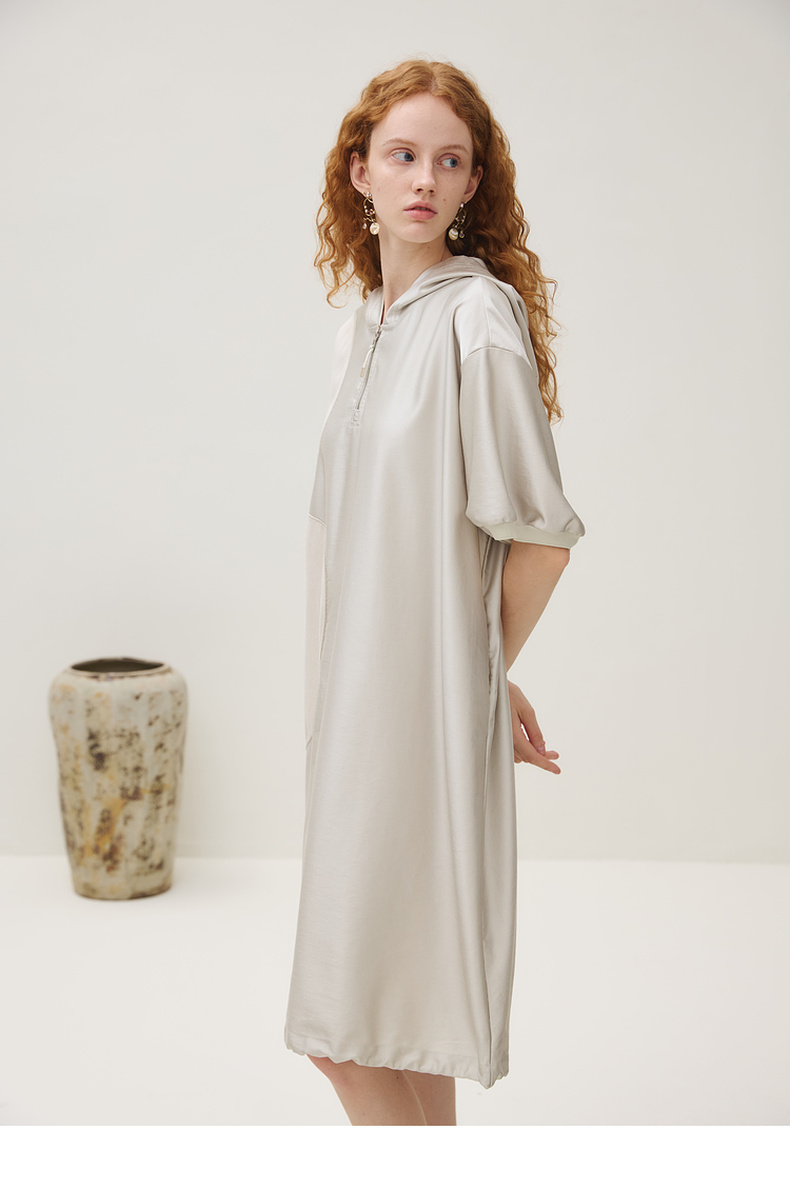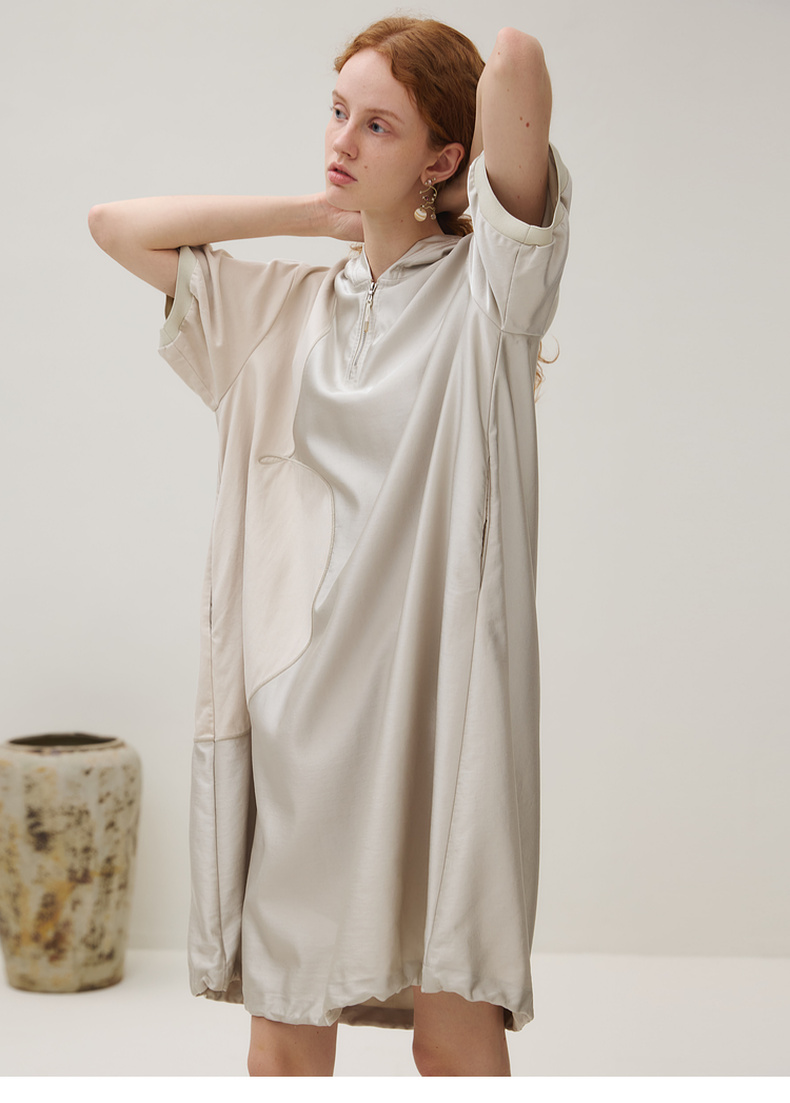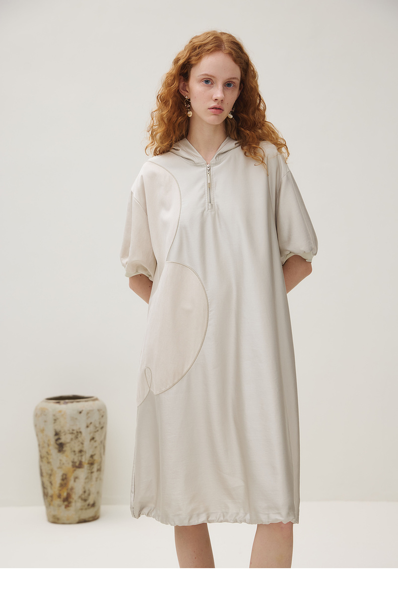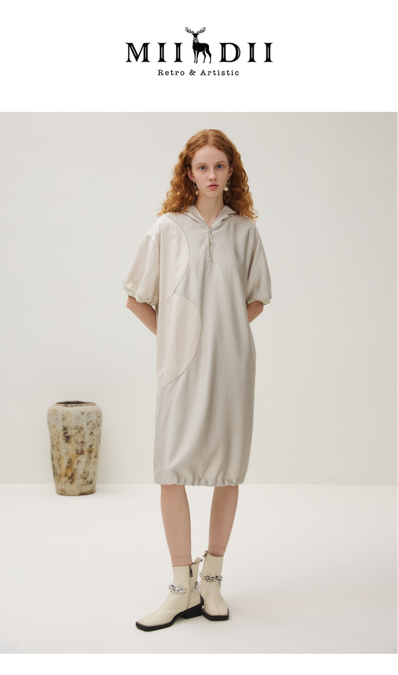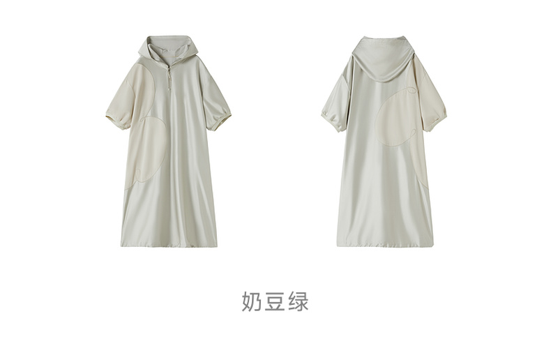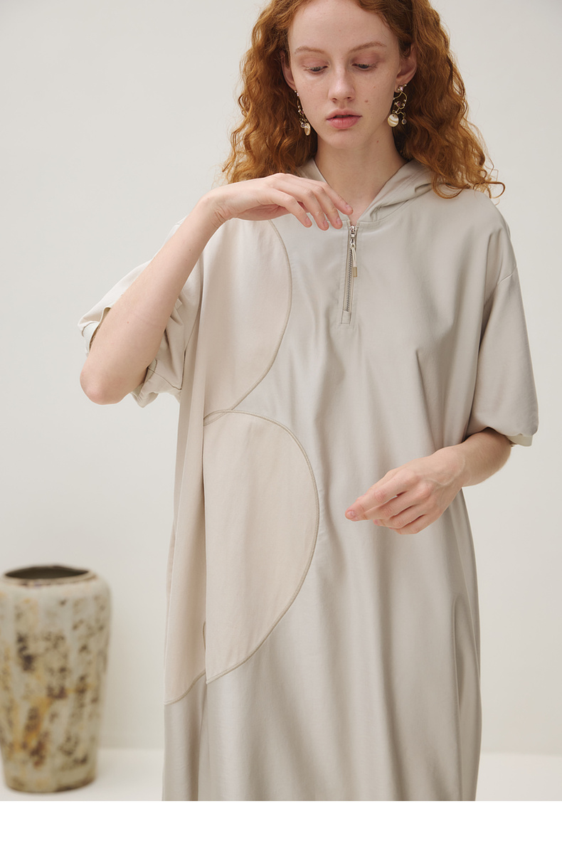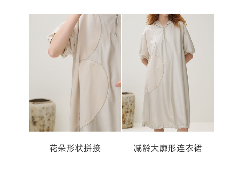 谜底连衣裙短袖女2025秋新品柔软舒适H型拼接连帽卫衣裙253ML1064