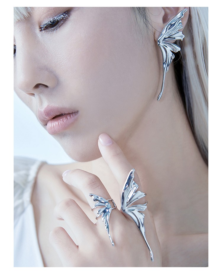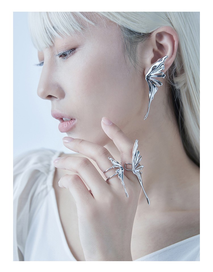 MOON WILD野月亮 液态蝴蝶戒指女小众设计个性夸张ins铜镀白金食指戒开口