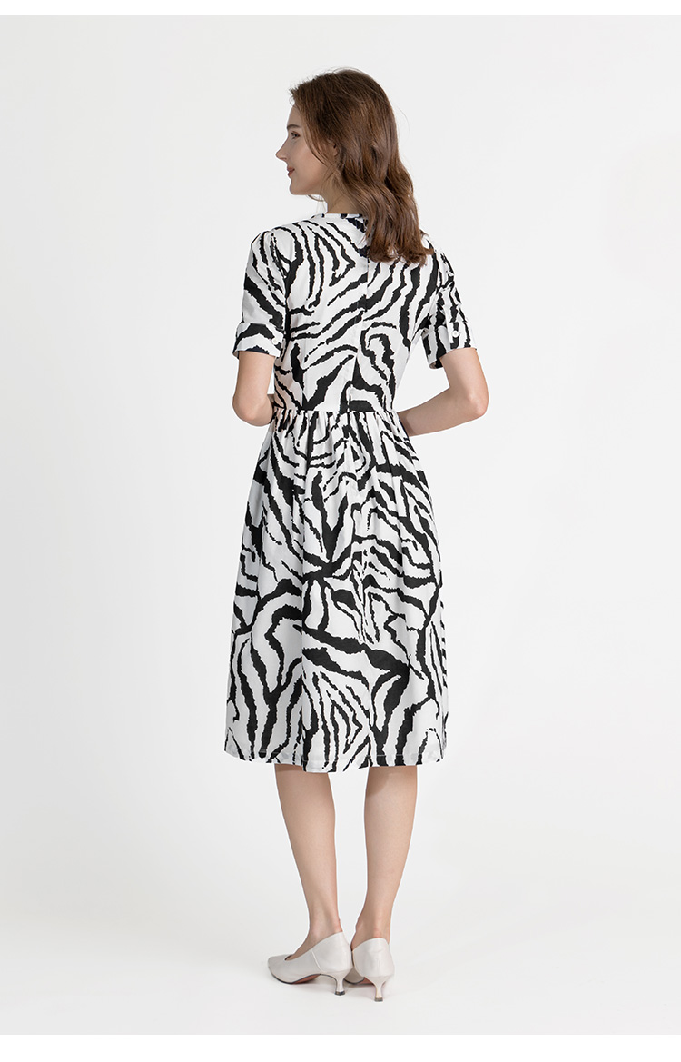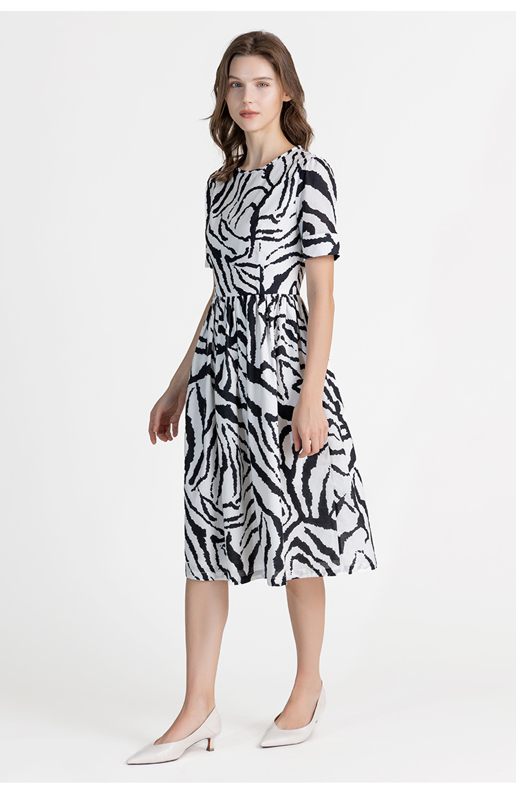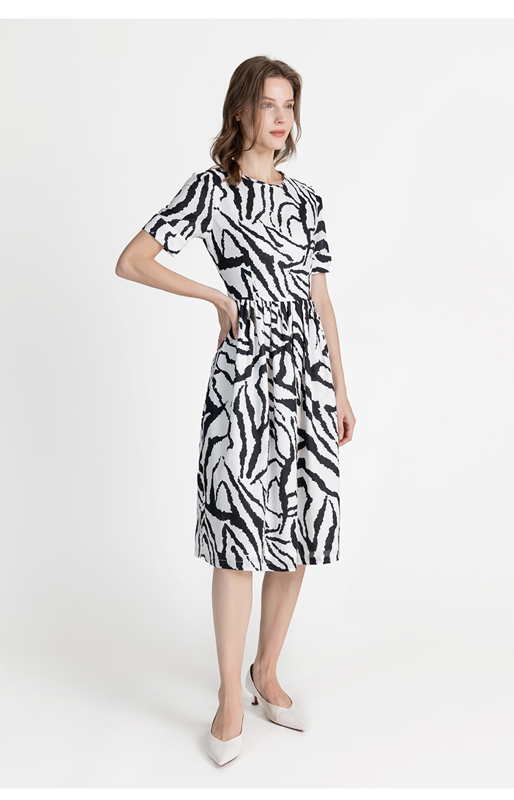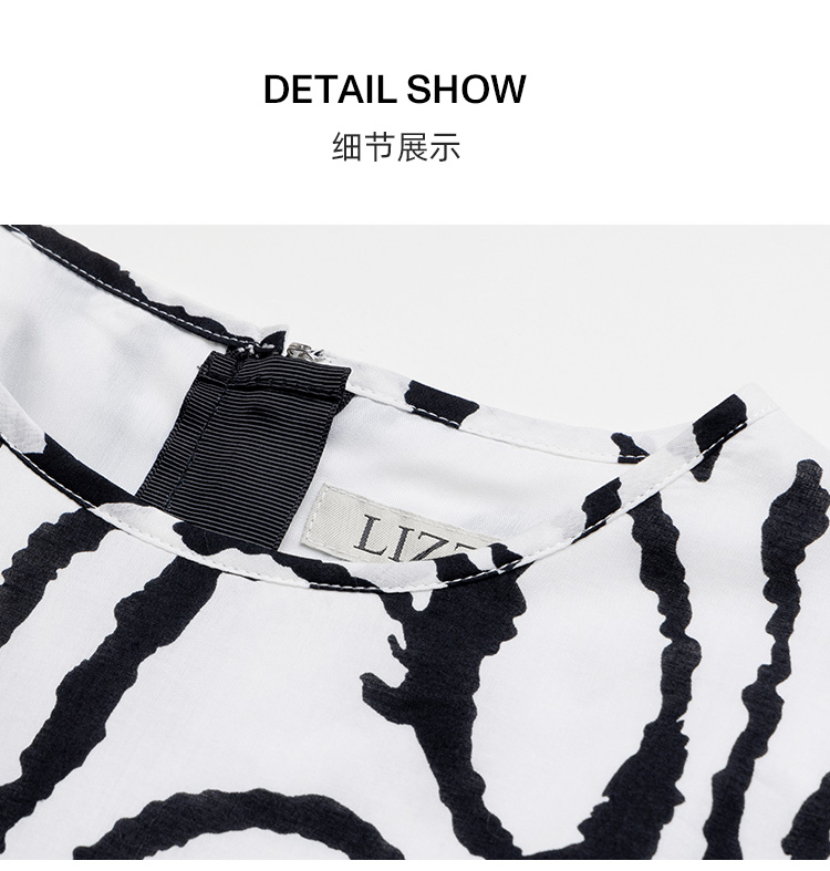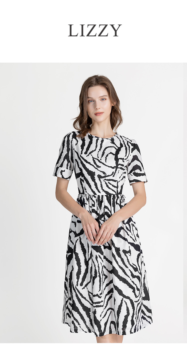 LIZZY夏季简约清爽印花圆领通勤短袖连衣裙6559