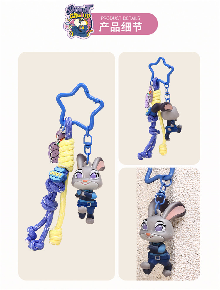 Jinnew联名疯狂动物城 可爱朱迪兔钥匙扣 尼克狐狸包挂件 树懒闪电 挂件创意(款式随机)