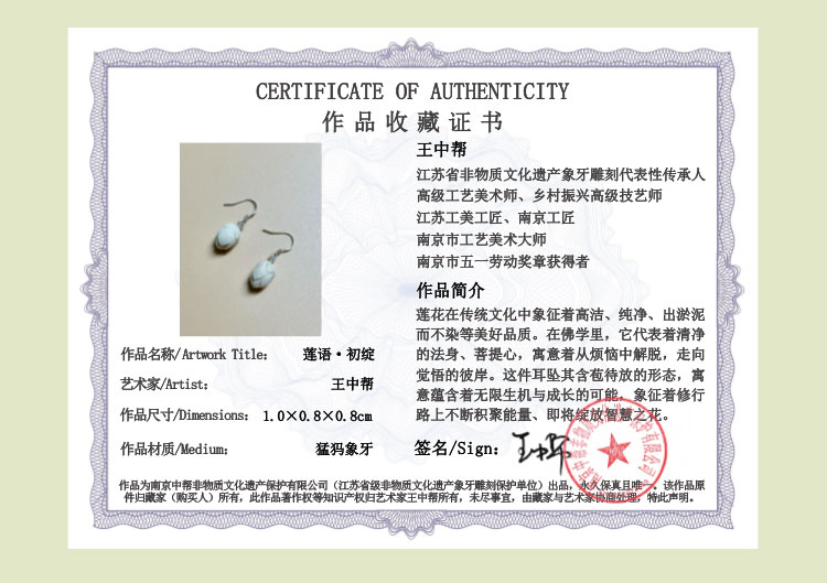 牛首山文创非遗猛犸牙雕系列耳坠耳环女高级感耳饰限量南京纪念品