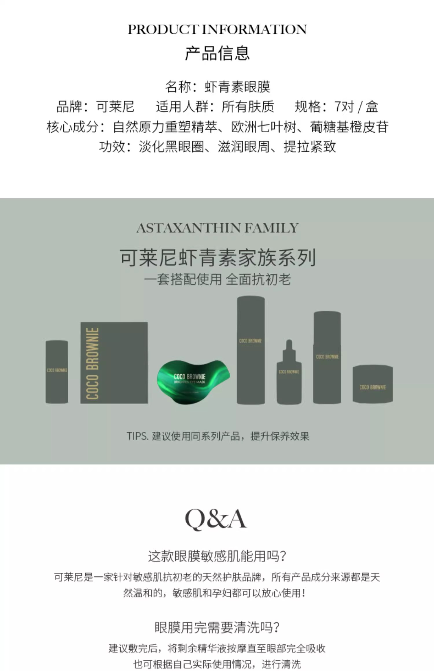 【中欧班列】新西兰品牌 可莱尼眼膜 Coco Brownie虾青素眼膜贴淡化黑眼圈细纹7片/盒 SZQR