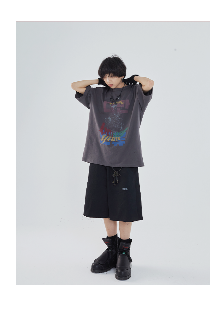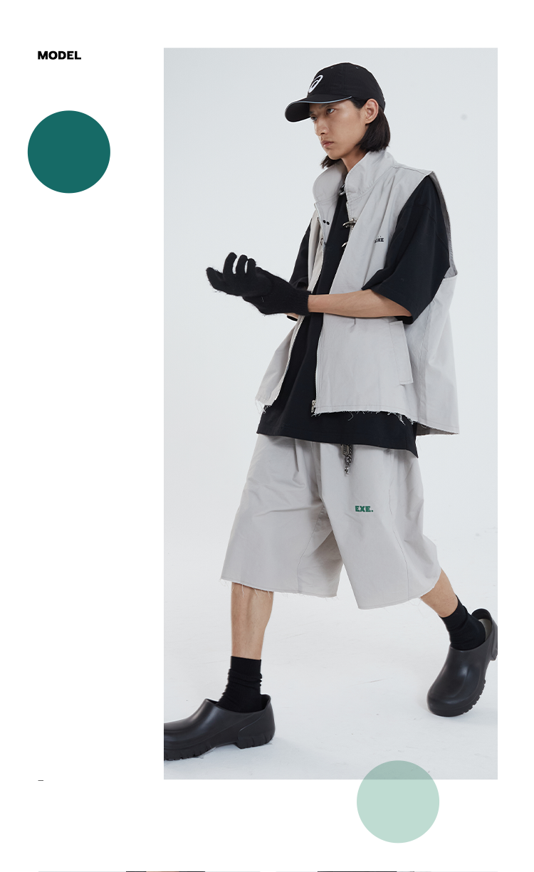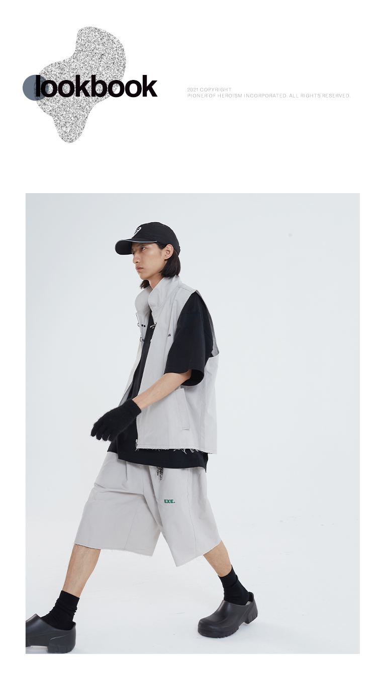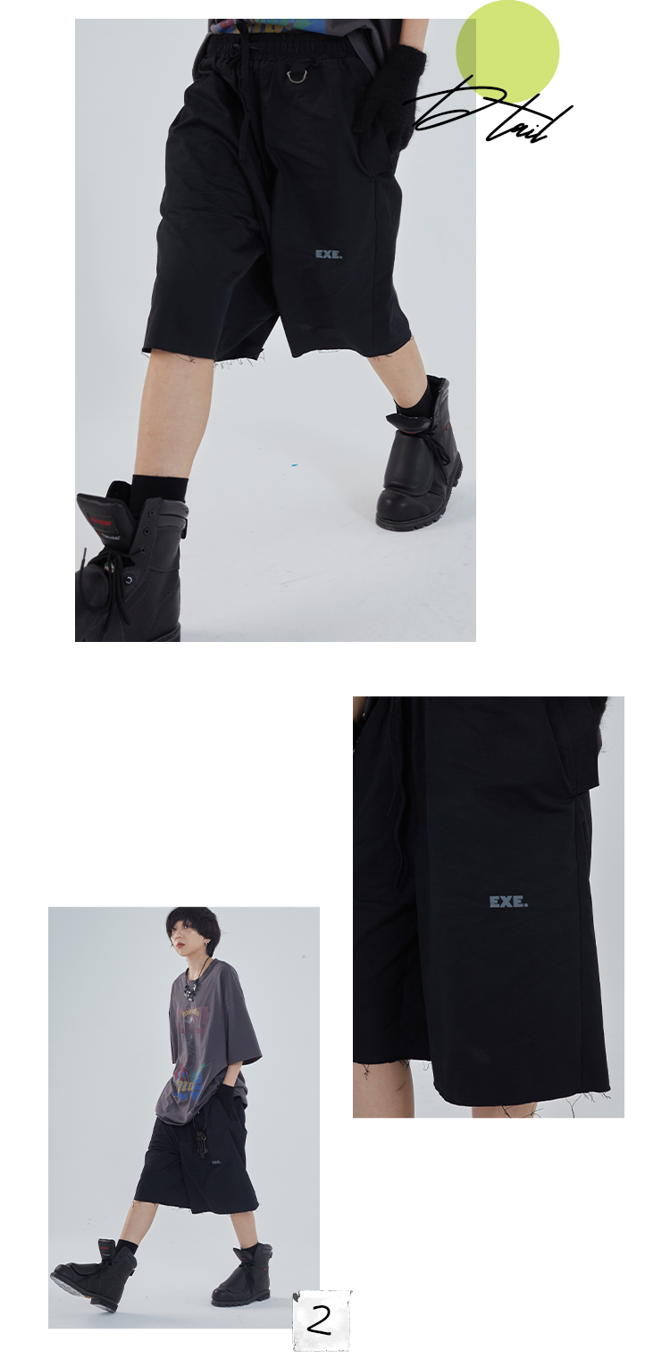 POH 「程序员」廓形结构松紧街头休闲短裤男夏季宽松潮流五分裤男