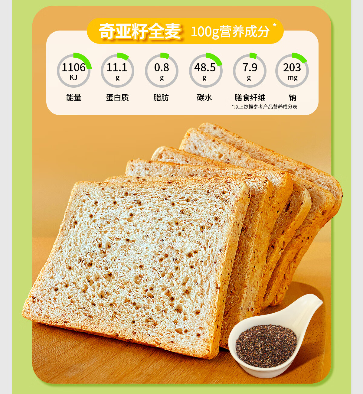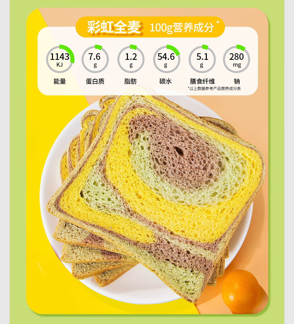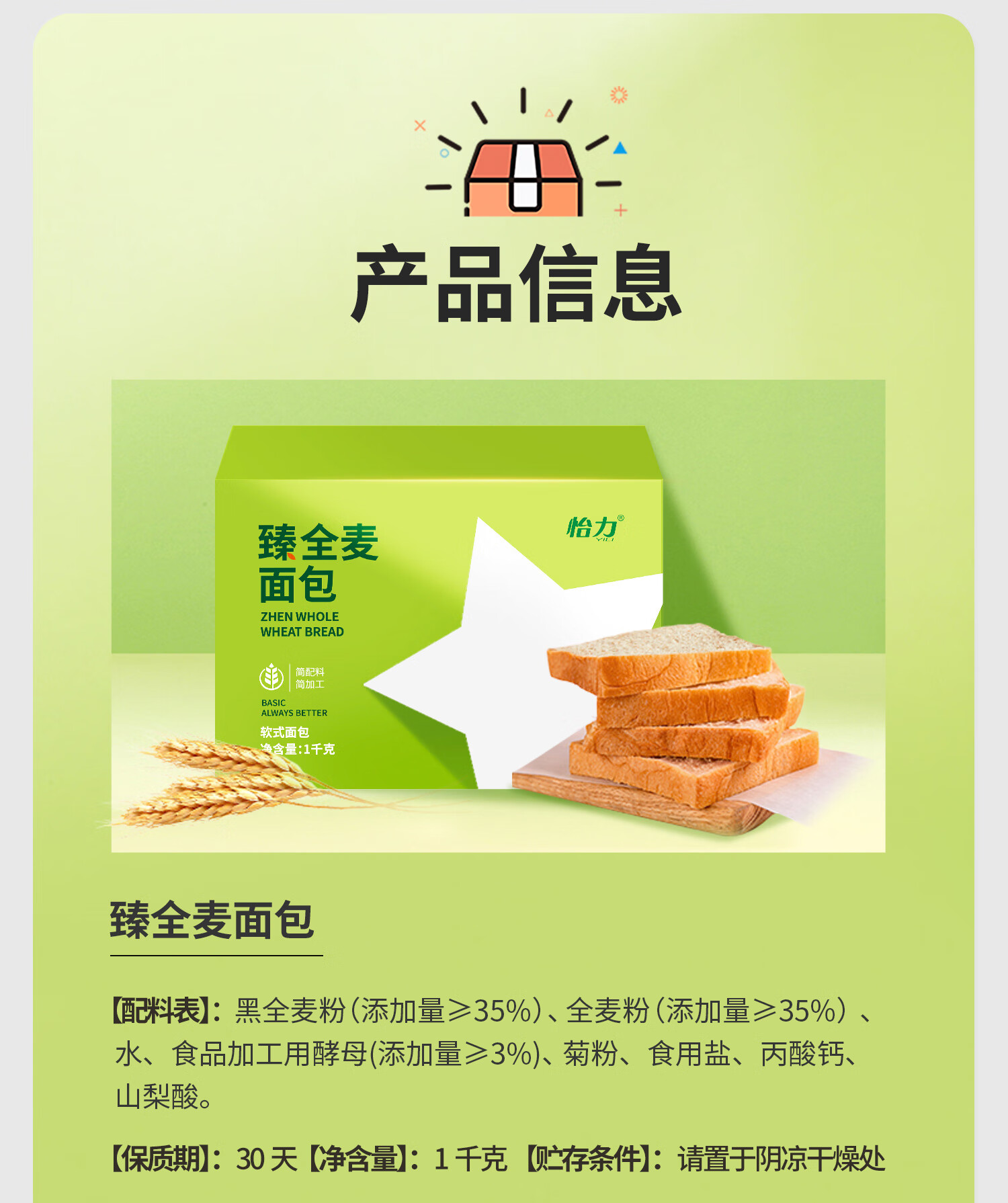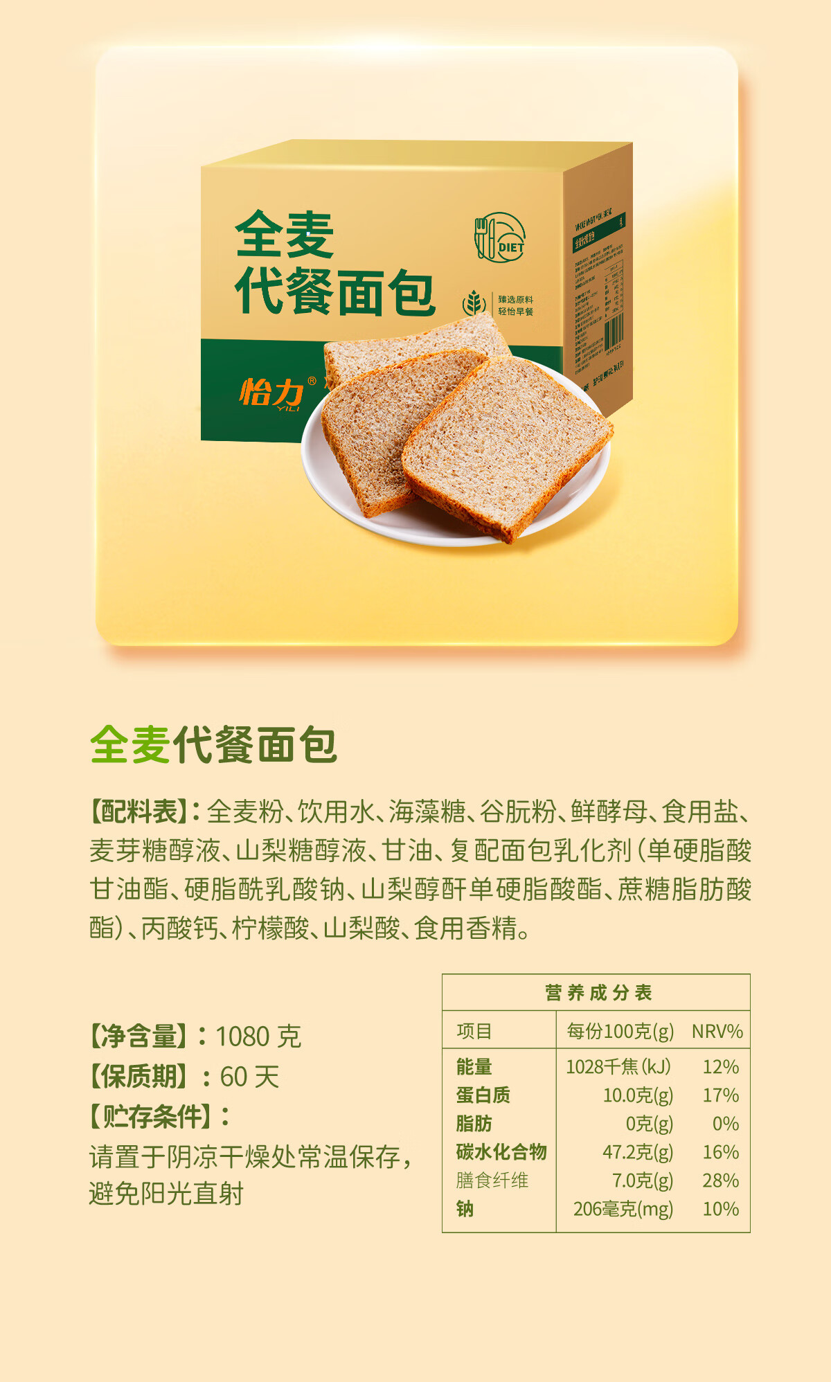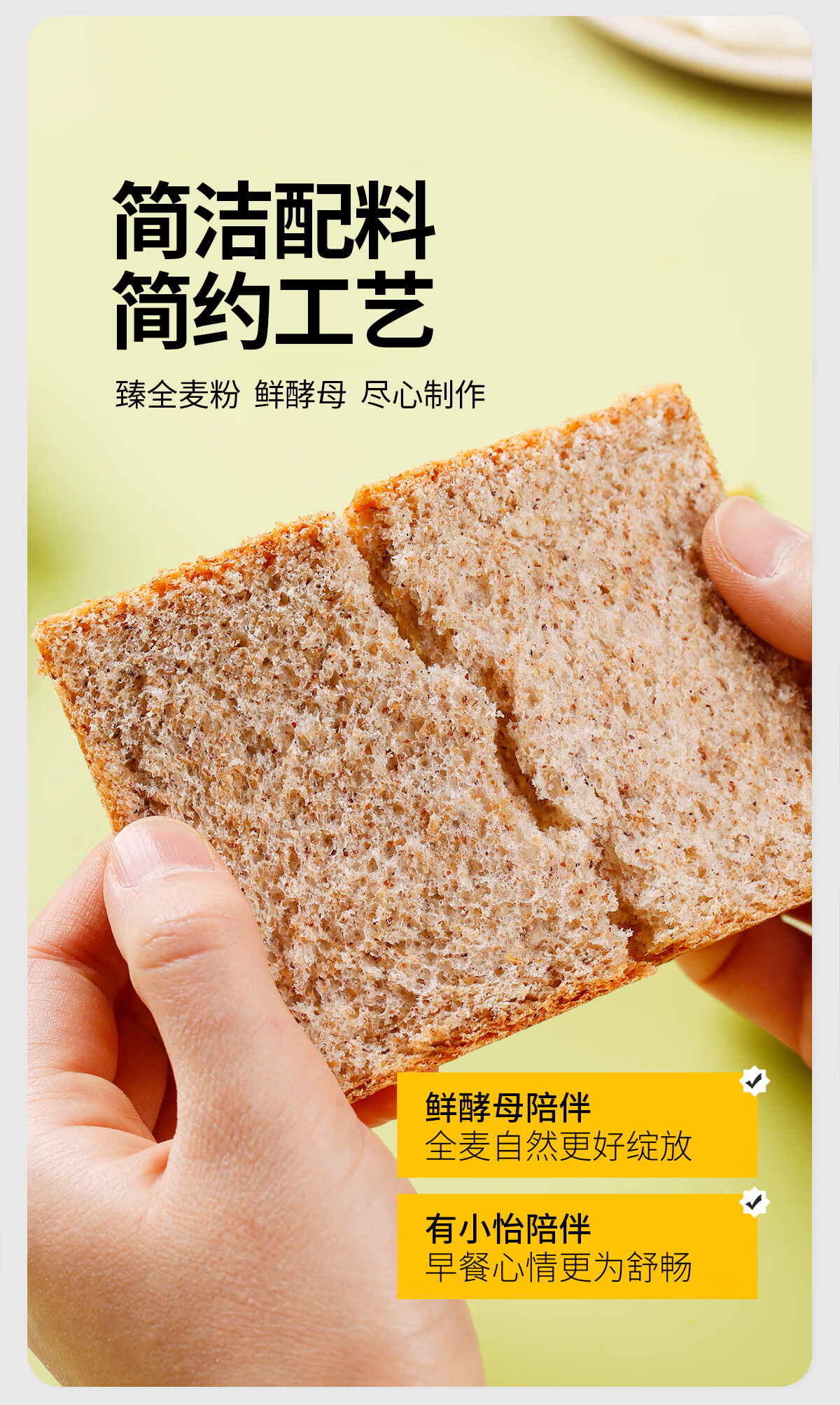 【控糖控卡食品】怡力彩虹全麦面包/鲜酵母臻全麦面包1000克
