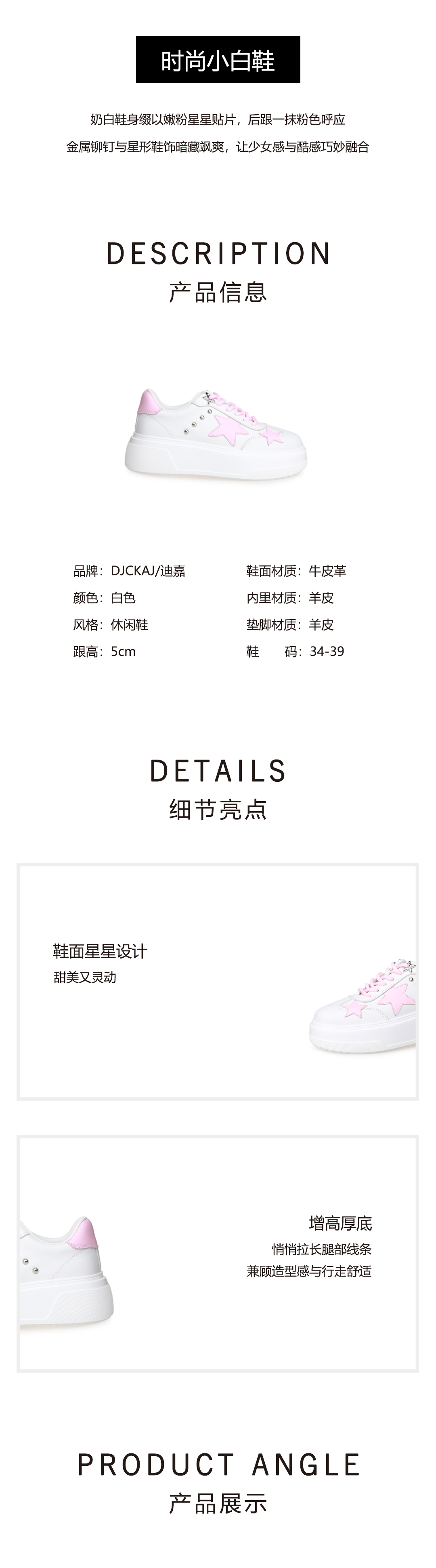豪麟名鞋迪嘉女鞋牛皮革时尚休闲鞋DJJGA52WX017白色