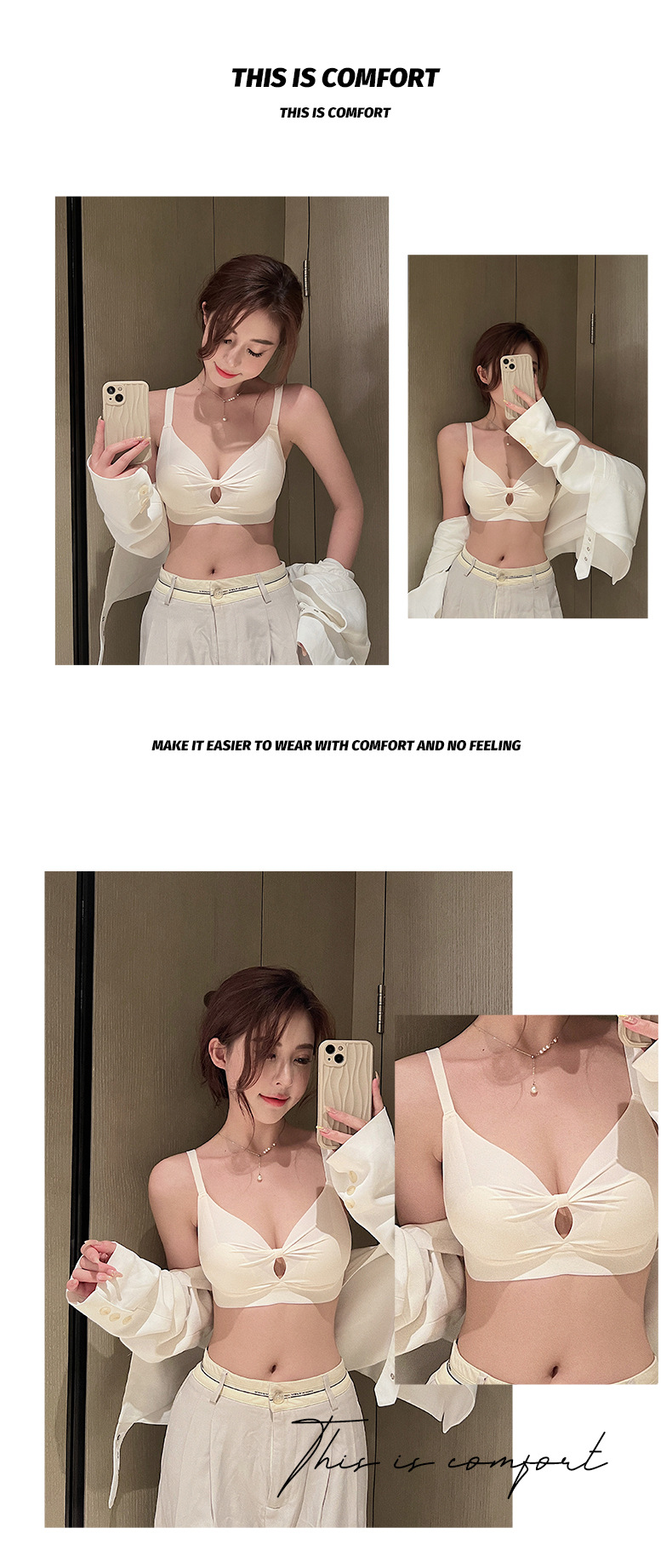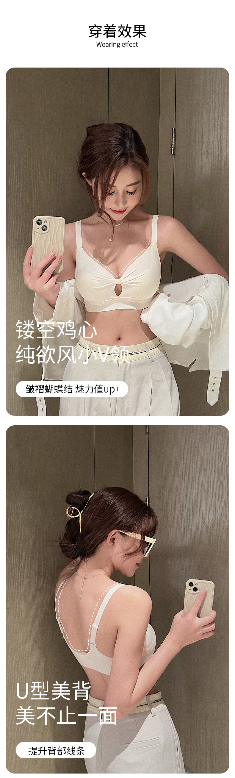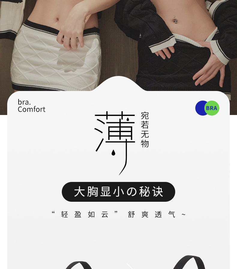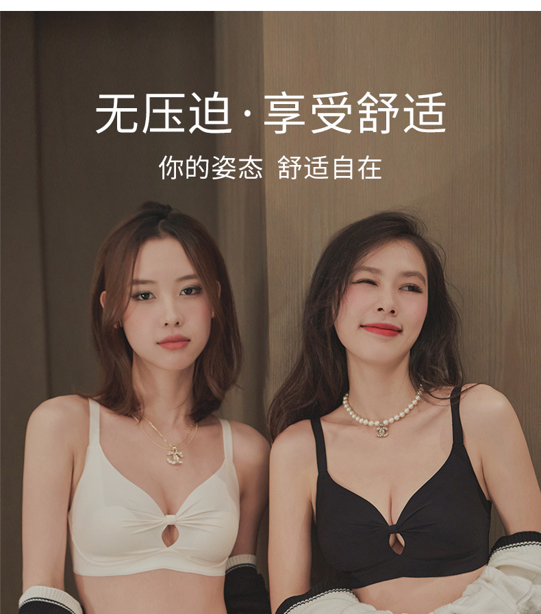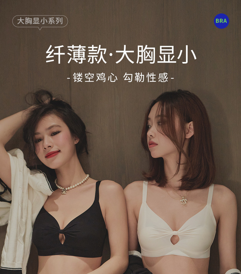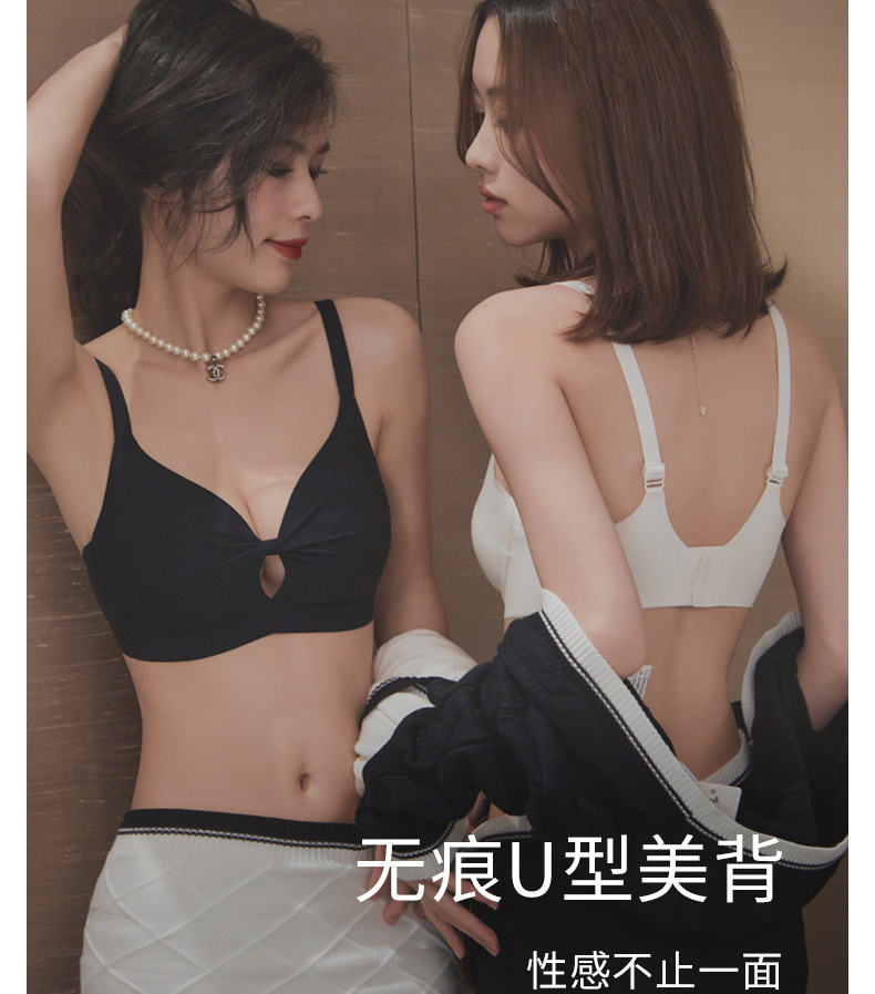 【大胸显小系列】夏季薄款无痕U型美背内衣女,少女风性感文胸罩聚拢收副,无钢圈饱满与生“聚”来,乳防下垂镂空透气,超舒适裸感睡眠文胸罩无痕内衣!