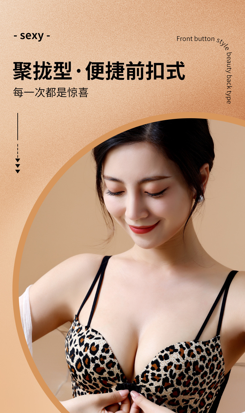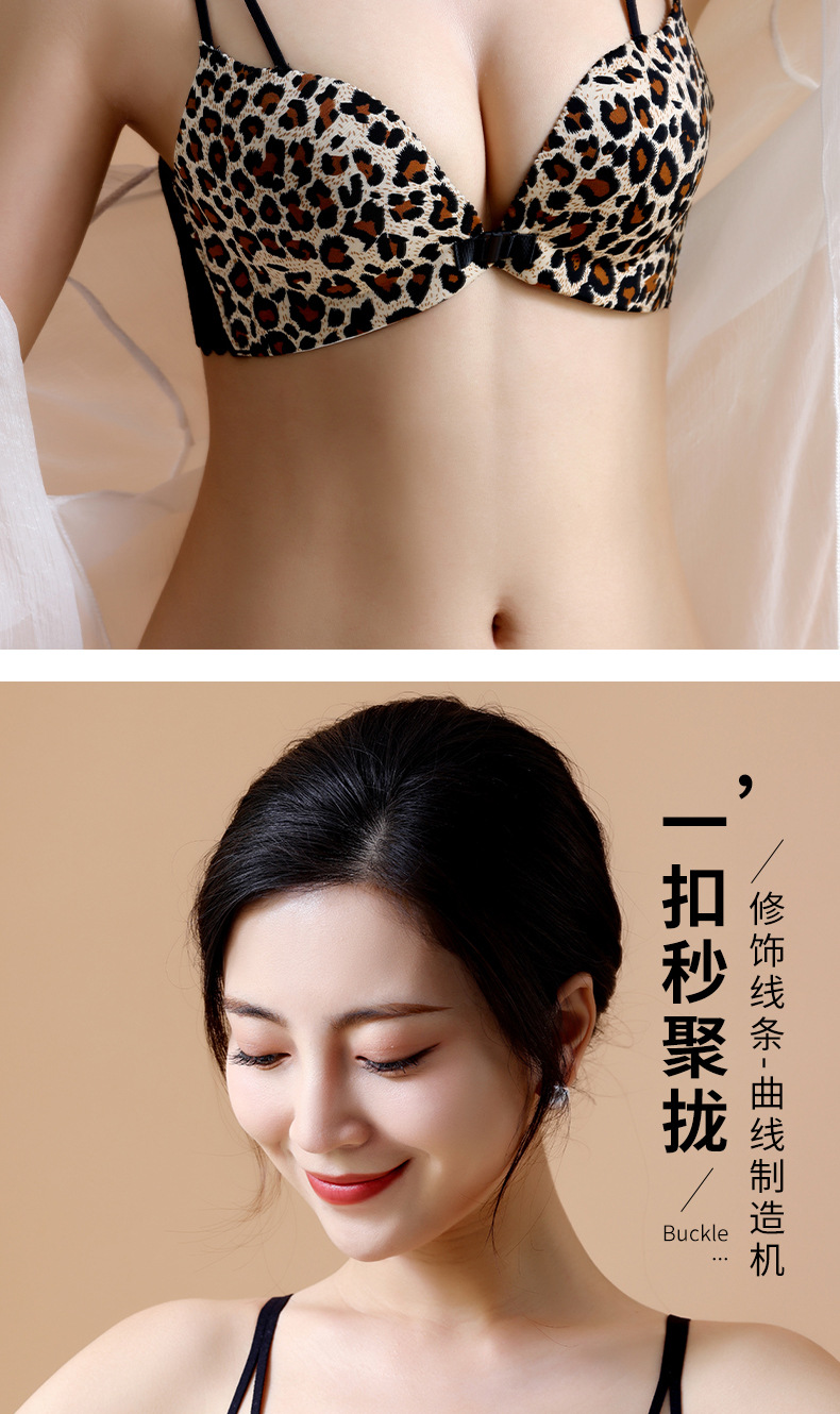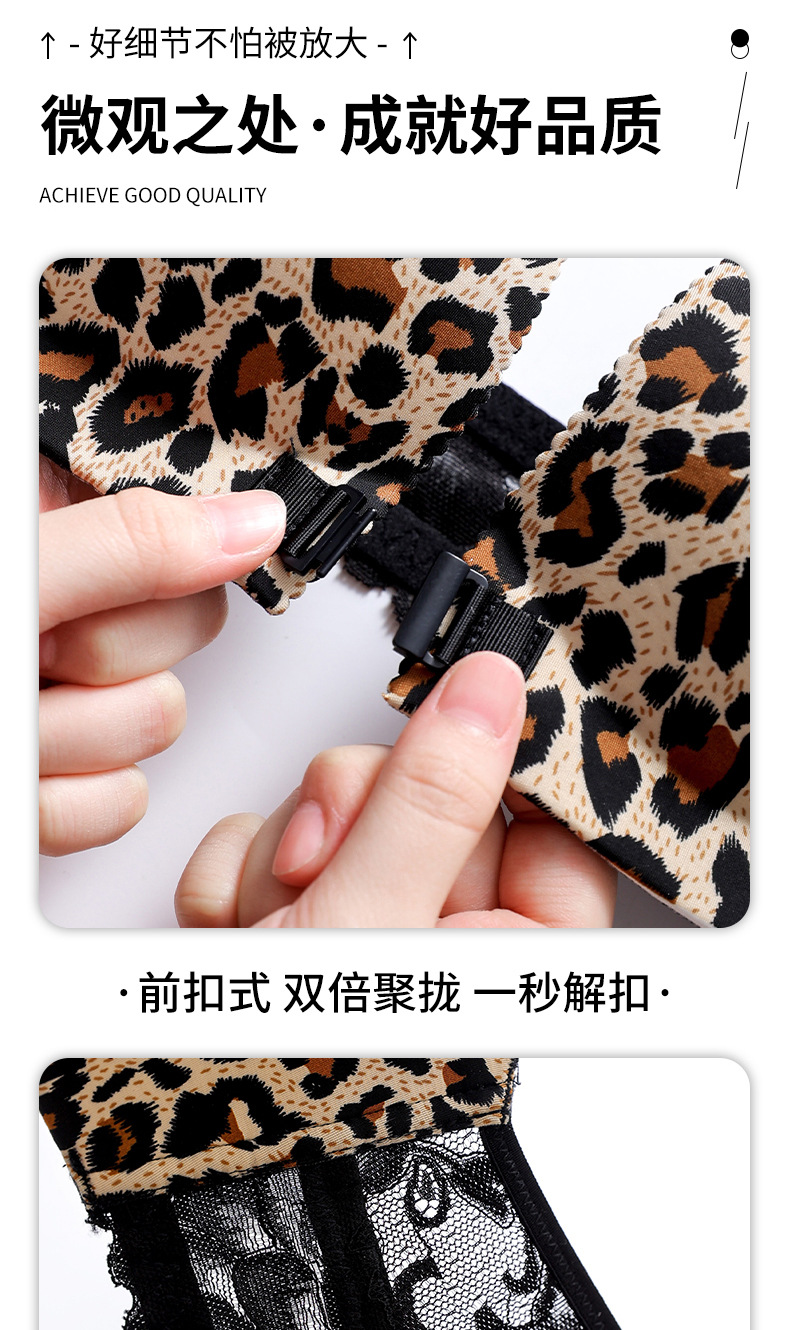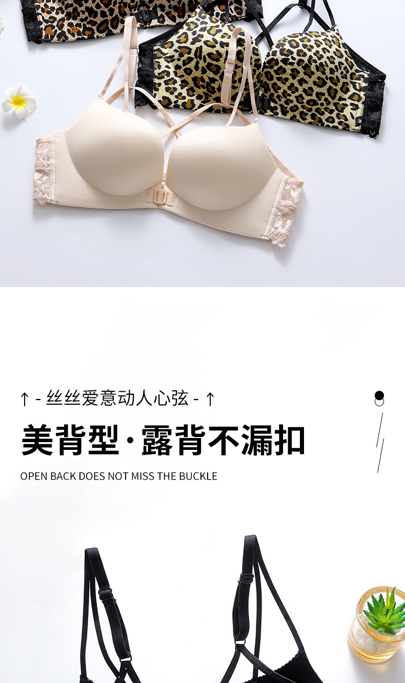 【买就送!送同款内裤!】美背豹纹前扣内衣,尽显性感魅力。无钢圈设计,舒适又自在。小胸聚拢,塑造完美曲线。厚薄可选,适合各种场合!!!