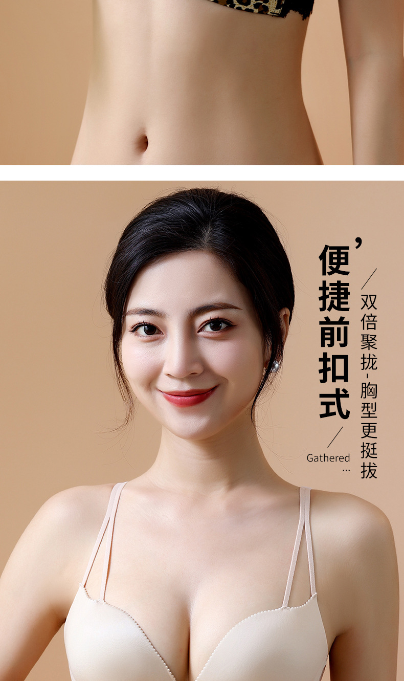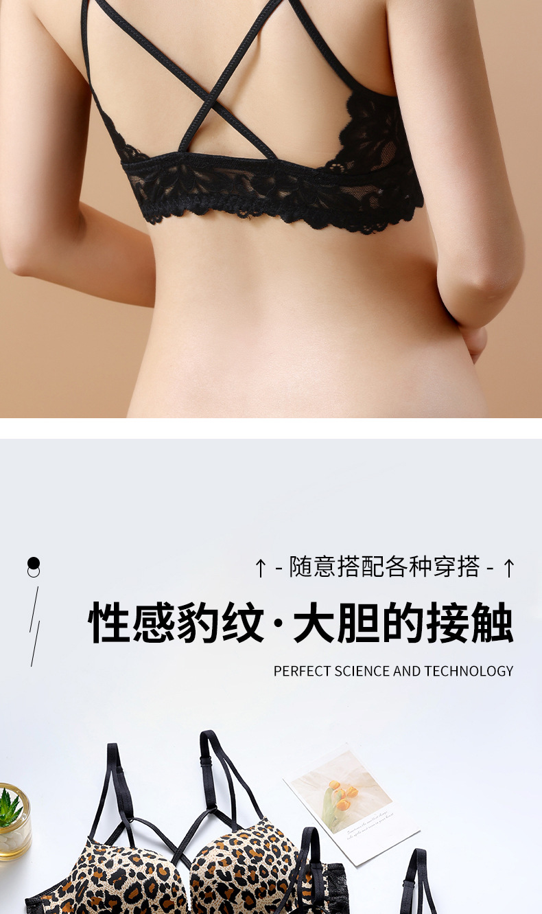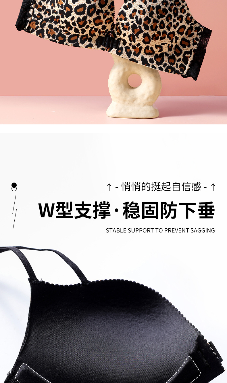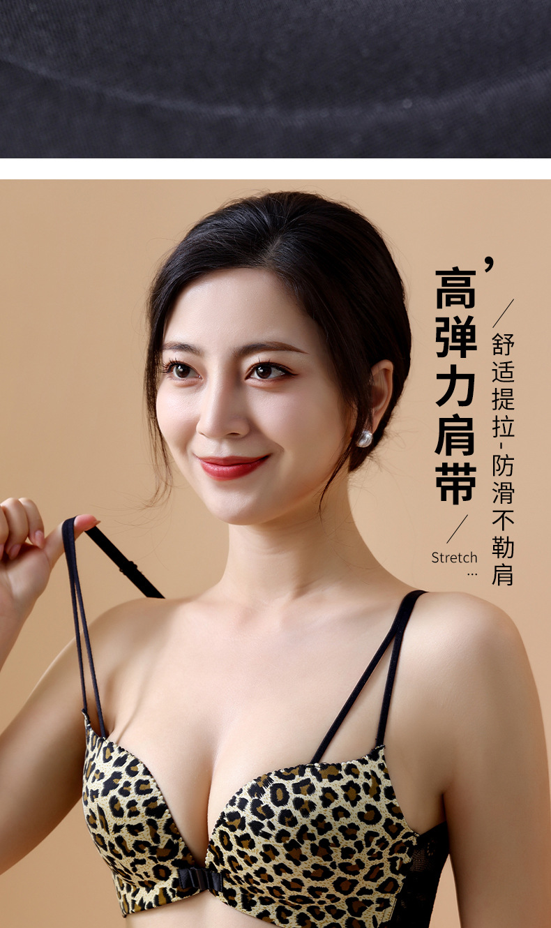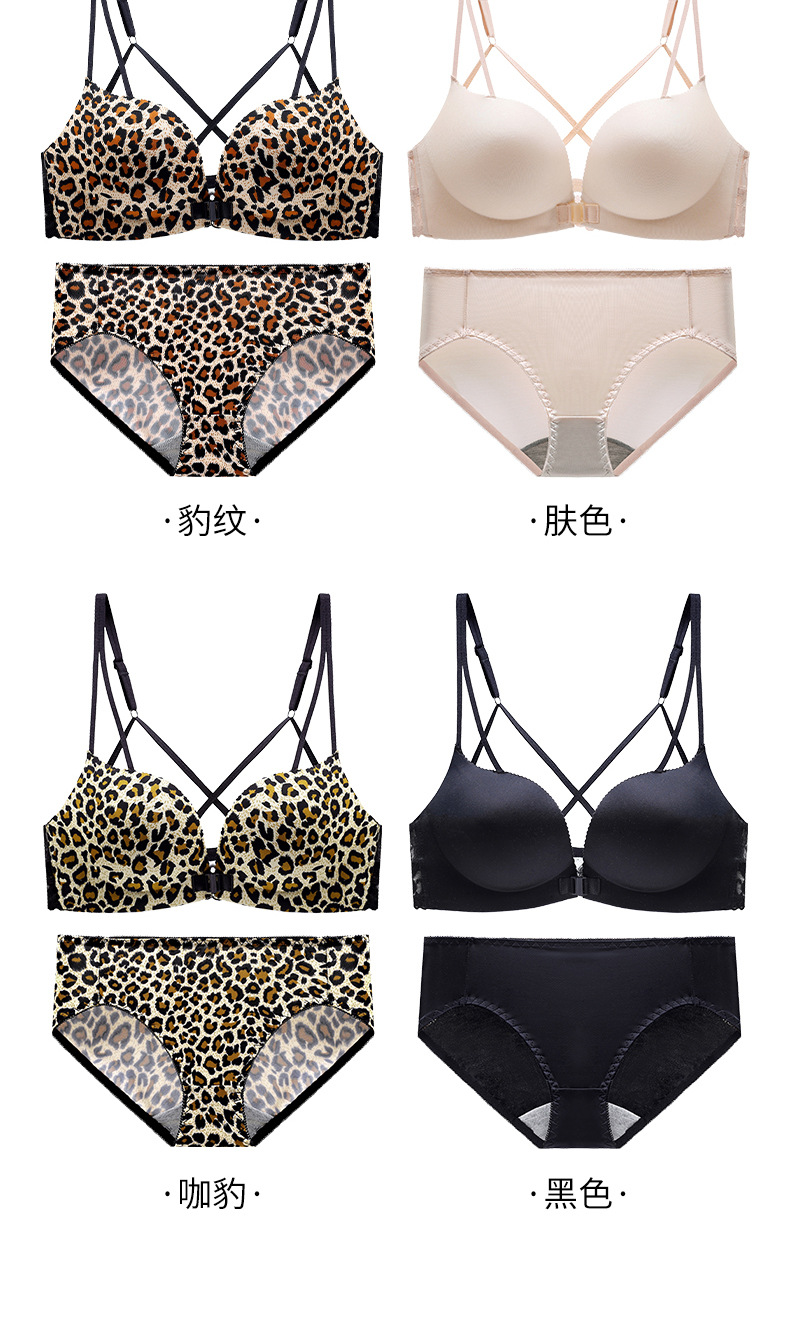 【买就送!送同款内裤!】美背豹纹前扣内衣,尽显性感魅力。无钢圈设计,舒适又自在。小胸聚拢,塑造完美曲线。厚薄可选,适合各种场合!!!