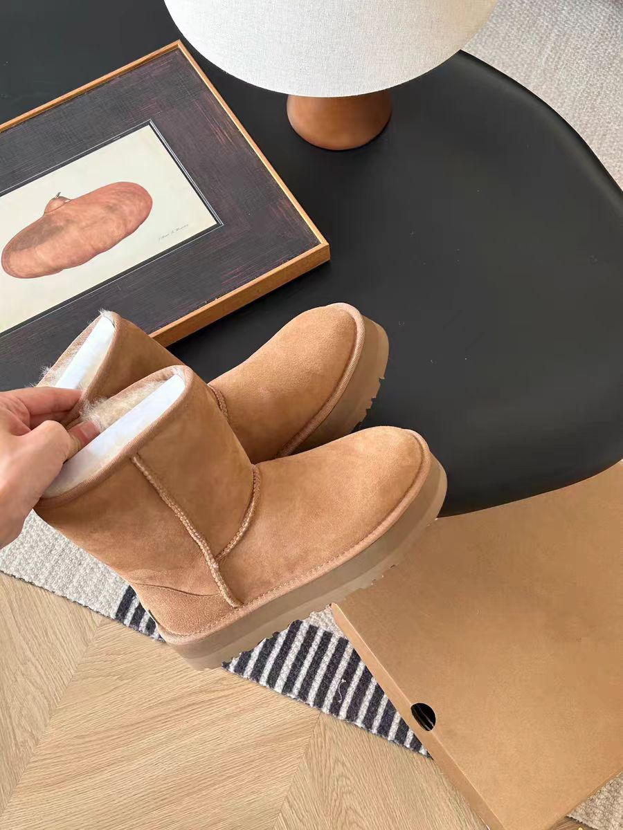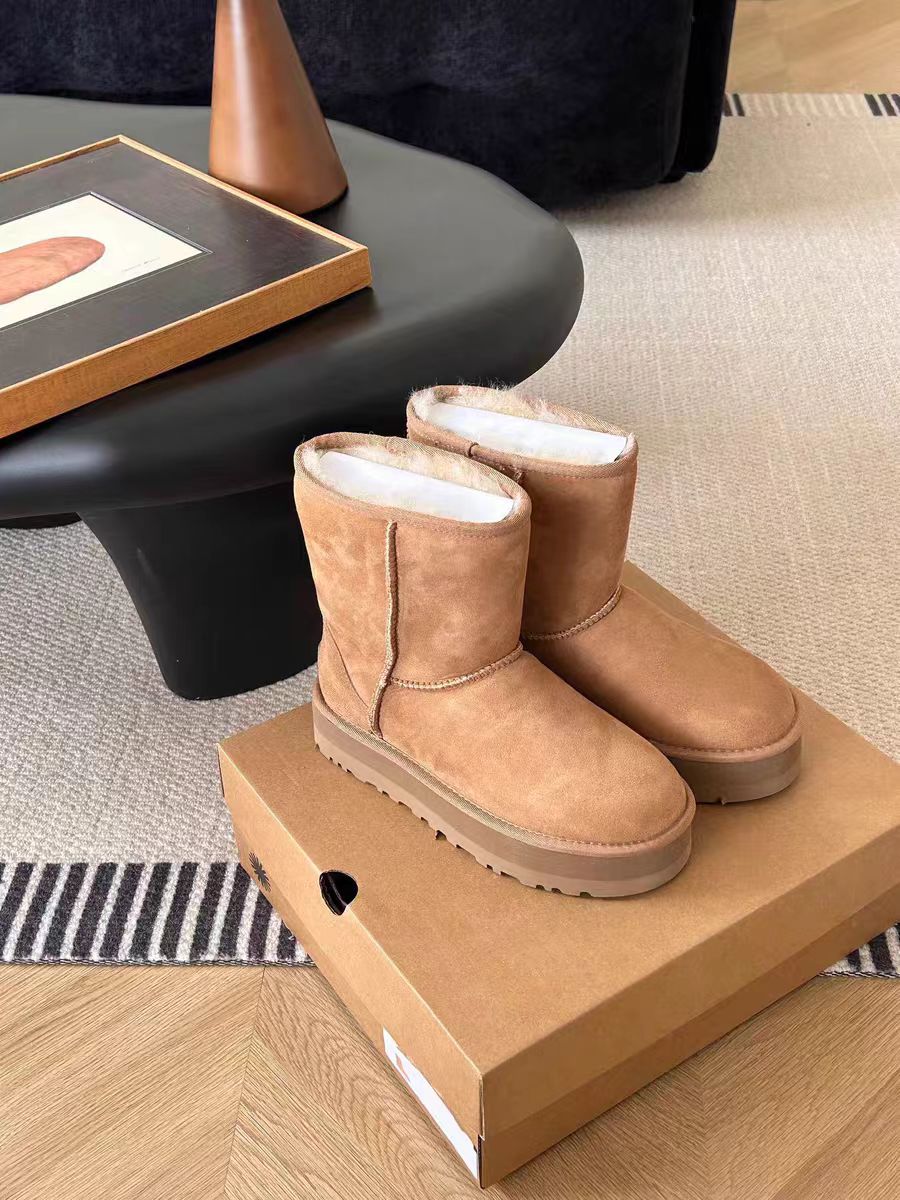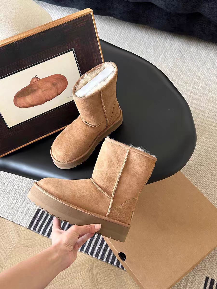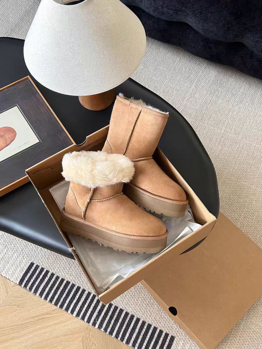 经典厚底羊毛一体中筒雪地靴女羊皮毛一体加绒加厚