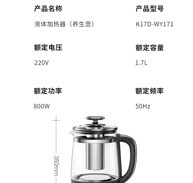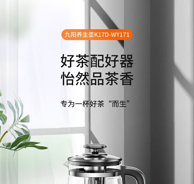 九阳(Joyoung)养生壶 煮茶器煮茶壶电水壶热水壶烧水壶电热水壶迷你玻璃花茶壶煎药壶 K17D-WY171