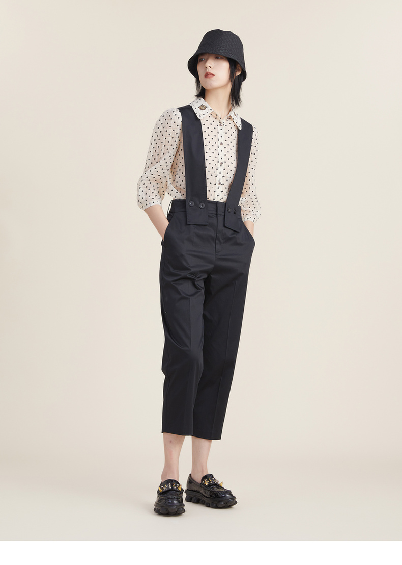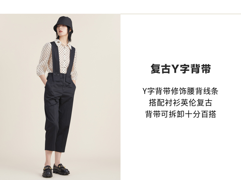 谜底背带裤女装2022秋新品复古简约可拆卸背带休闲裤223MK1055
