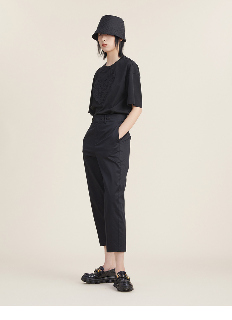 MIIDII谜底牛仔裤女2022春款舒适柔软天丝棉刺绣长裤女221MK0032