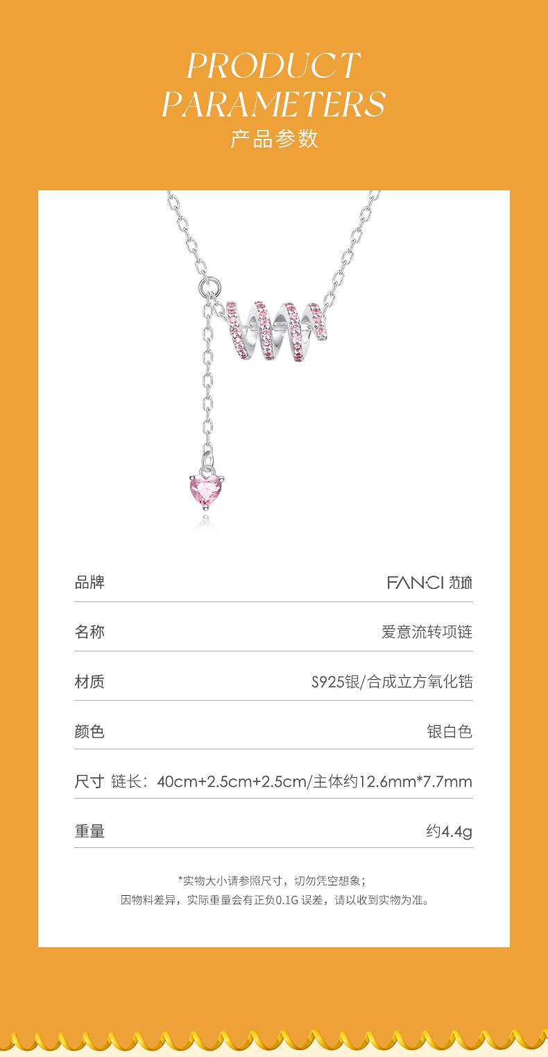 FANCI范琦始于2012年,以珠宝表达内心为初衷,聚焦不同亲密关系情感表达,联结无形情感,以情感符号「I FANCI U」传情达意,诠释“恋爱戴范琦,起点是你,终点亦是你”始终如一的恋爱价值观。