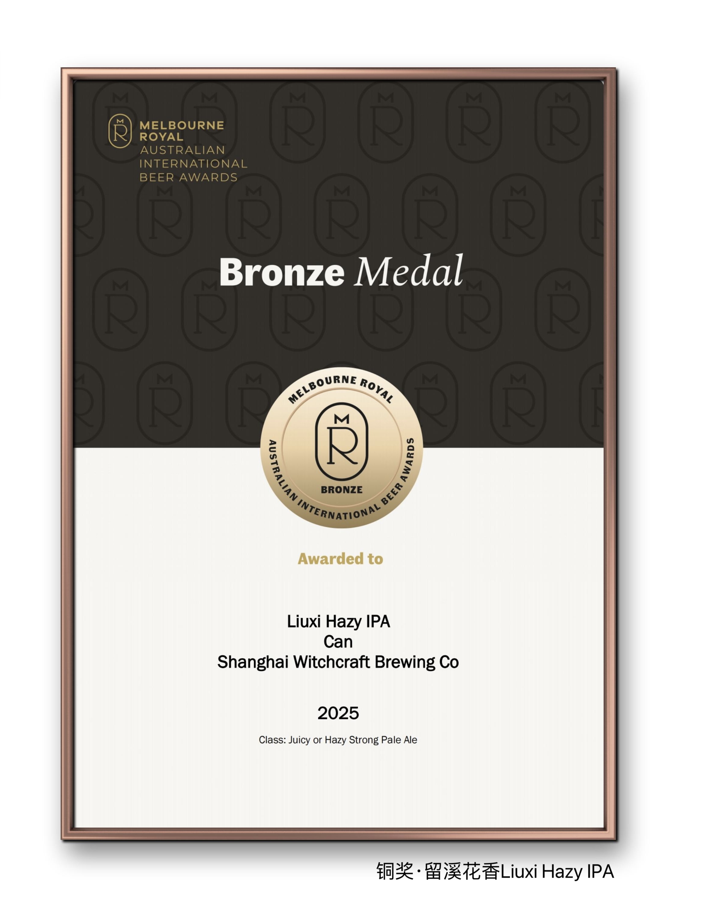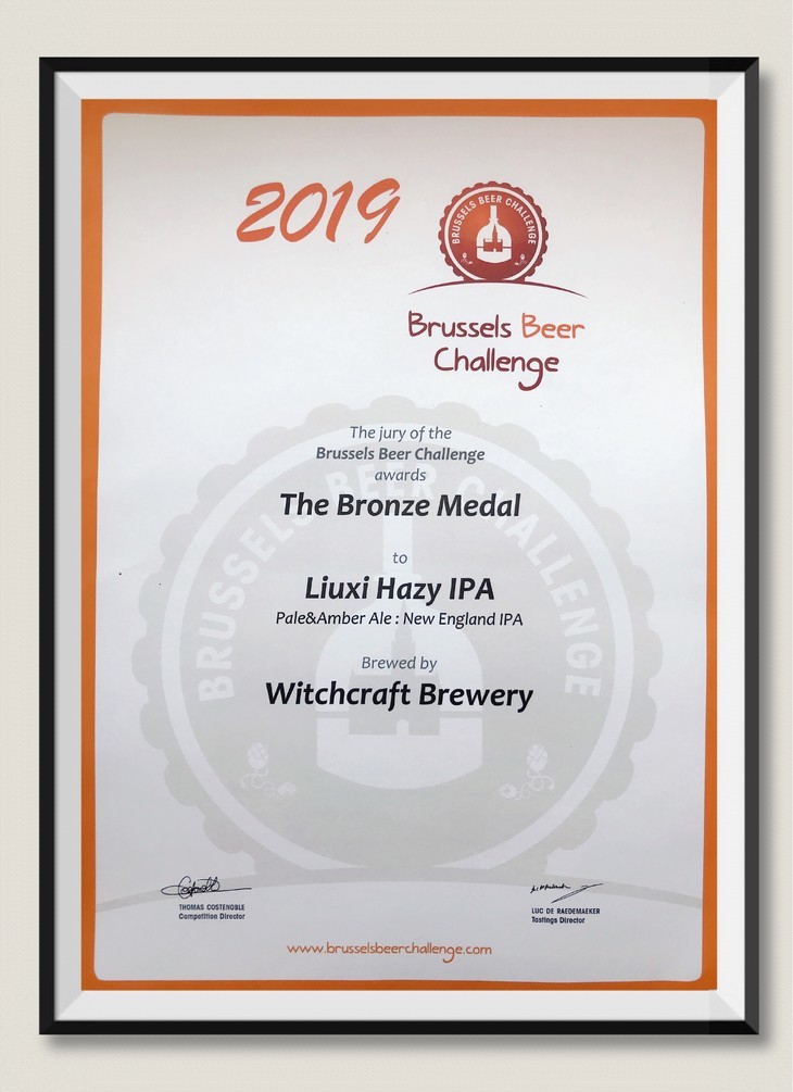 2019年11月,我们团队首次把这款“留溪花香”(LIUXI HAZY IPA)带到了比利时布鲁塞尔国际啤酒挑战赛,并获得铜奖。