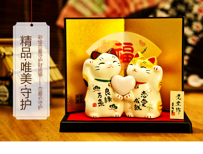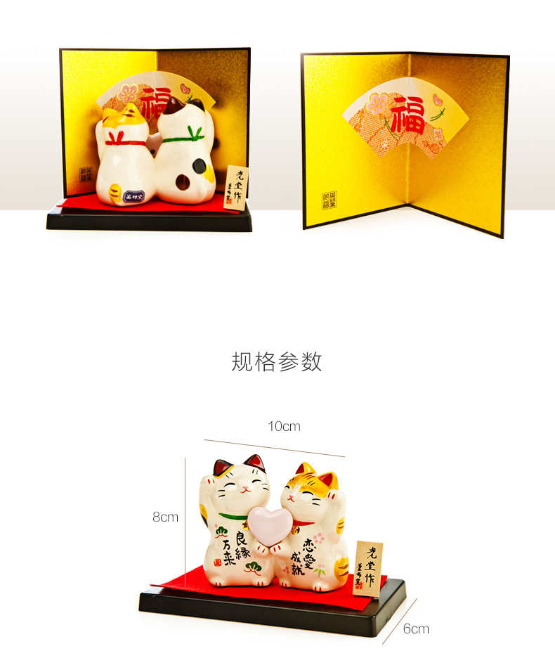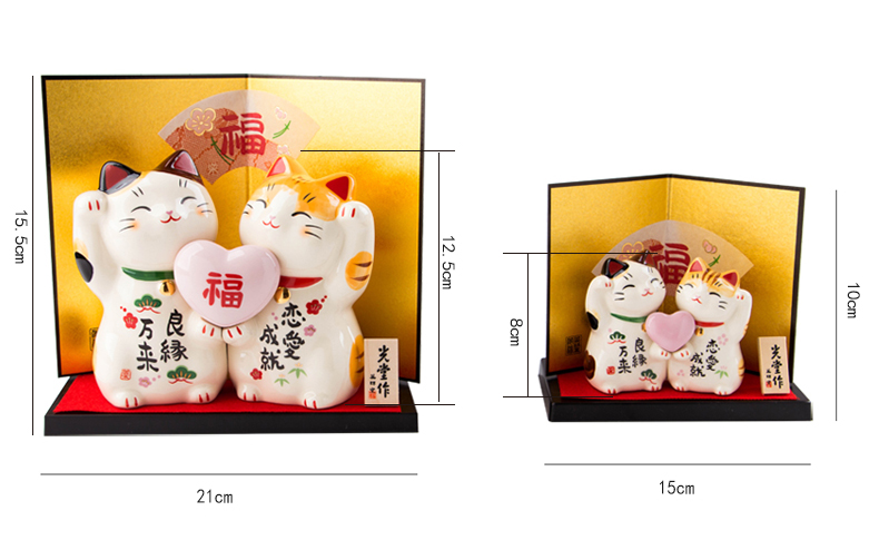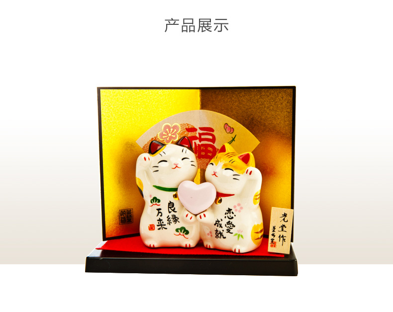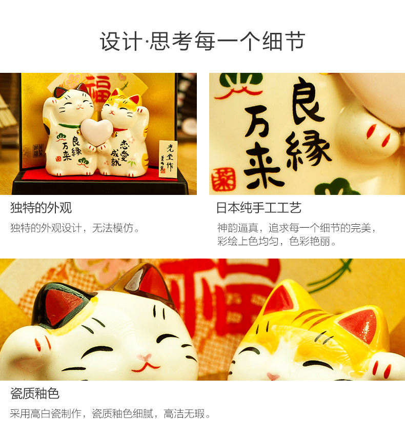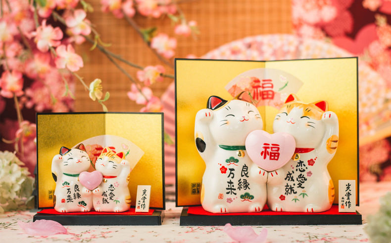 日本药师窑良缘成就招财猫摆件套装结婚恋爱礼物装饰品家居可爱
