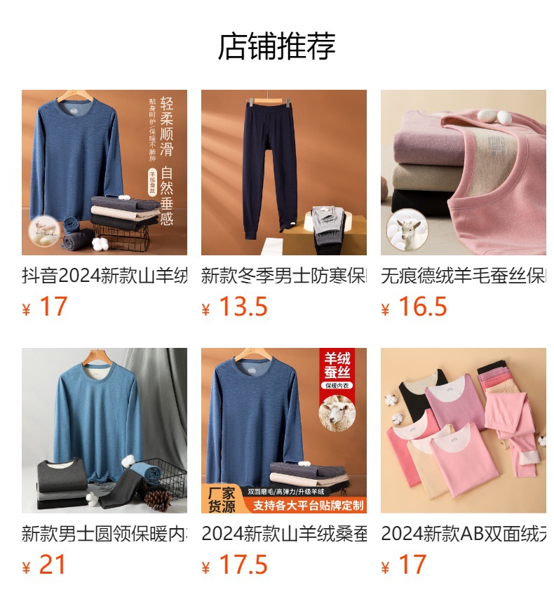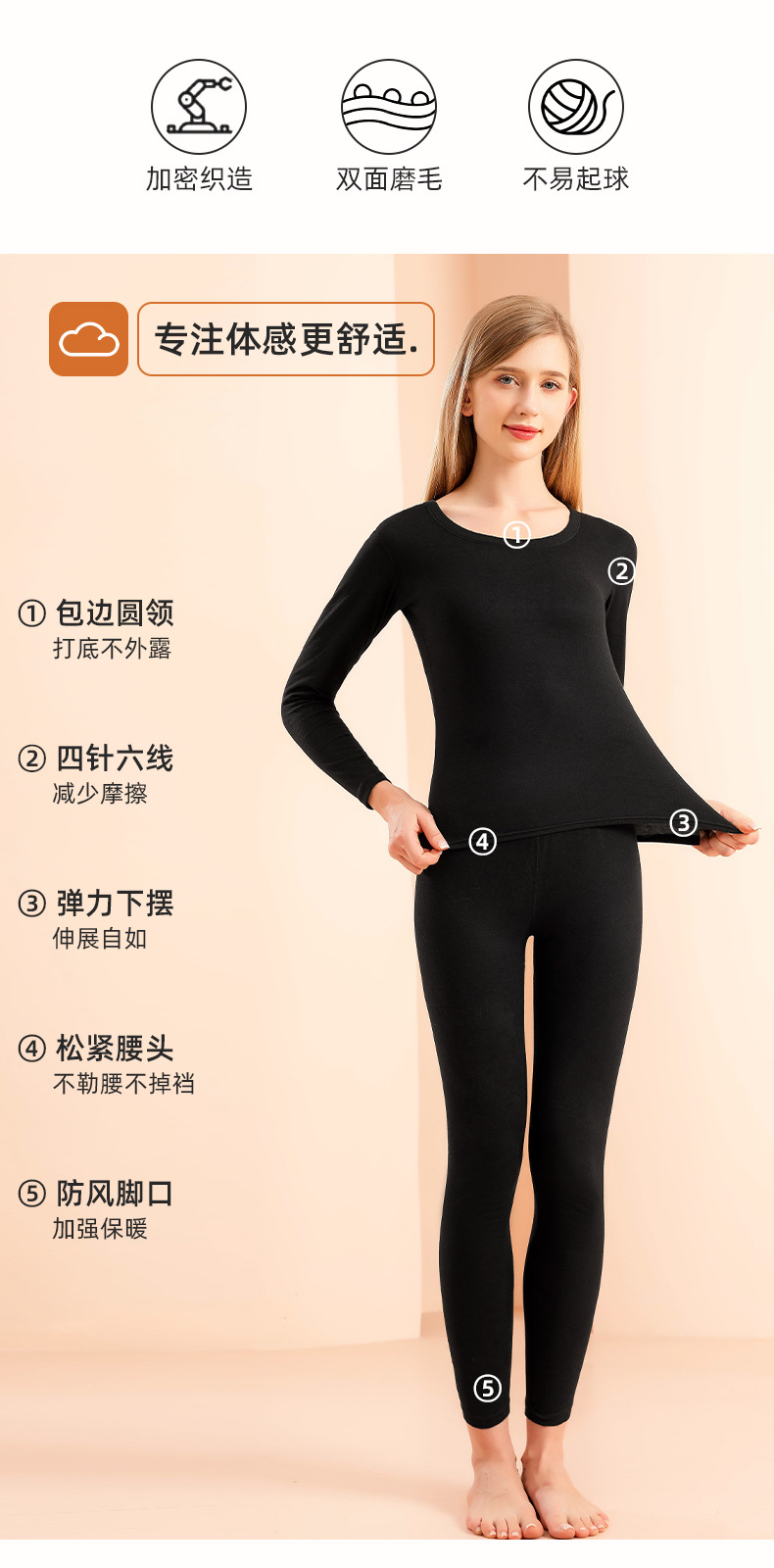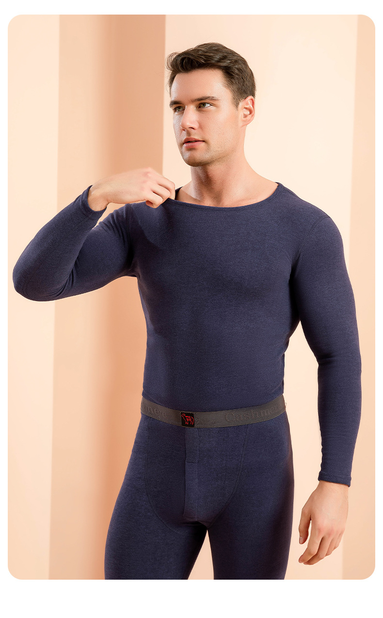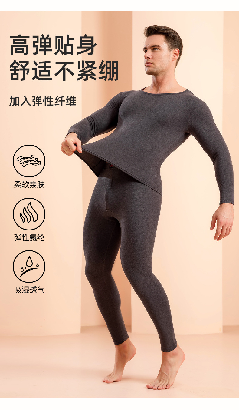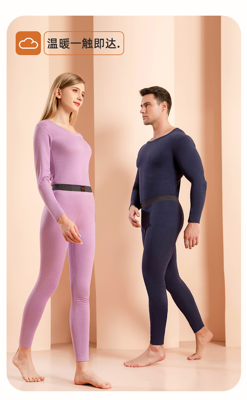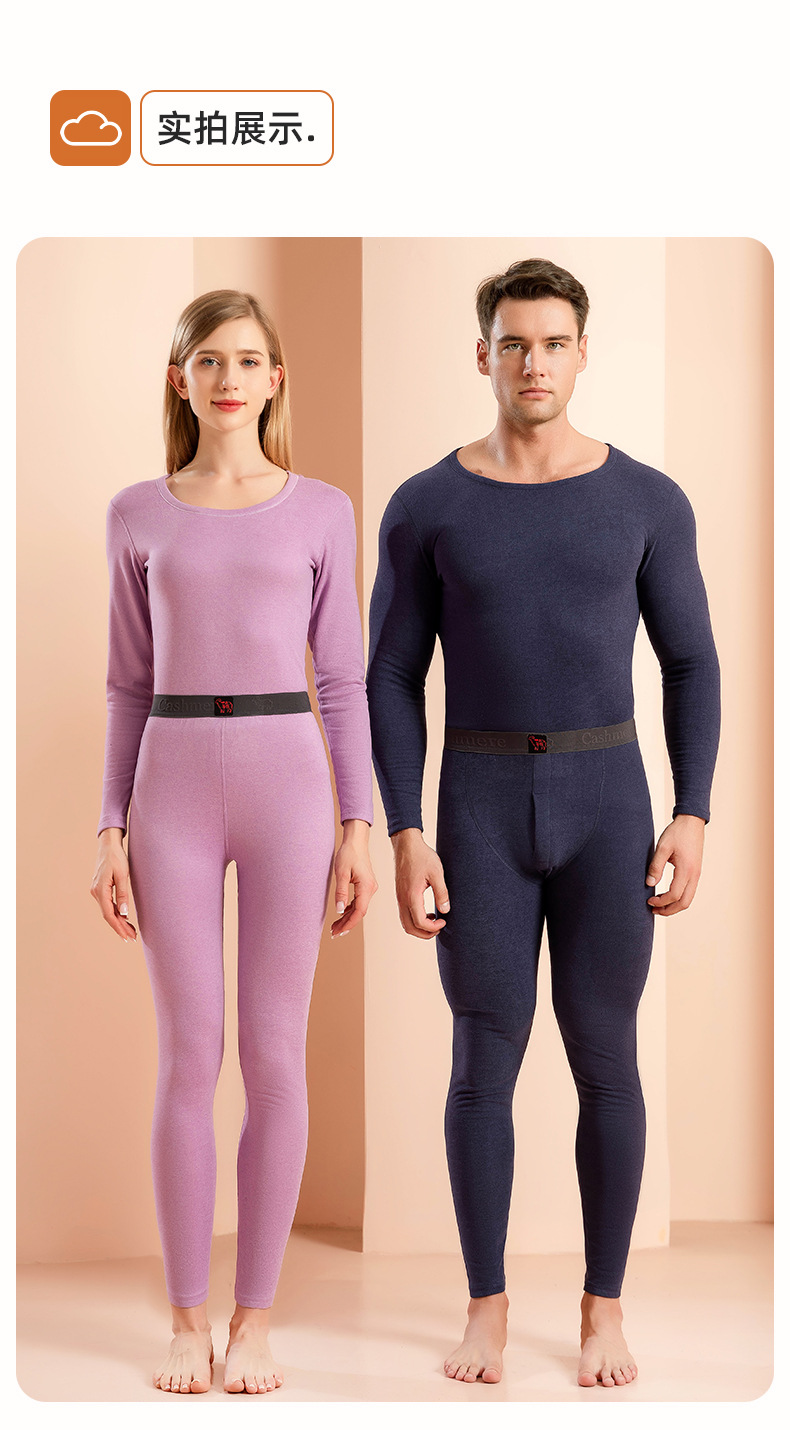 男士羊绒涤纶半高领女士中领保暖套装发热打底内衣德绒加厚批发
