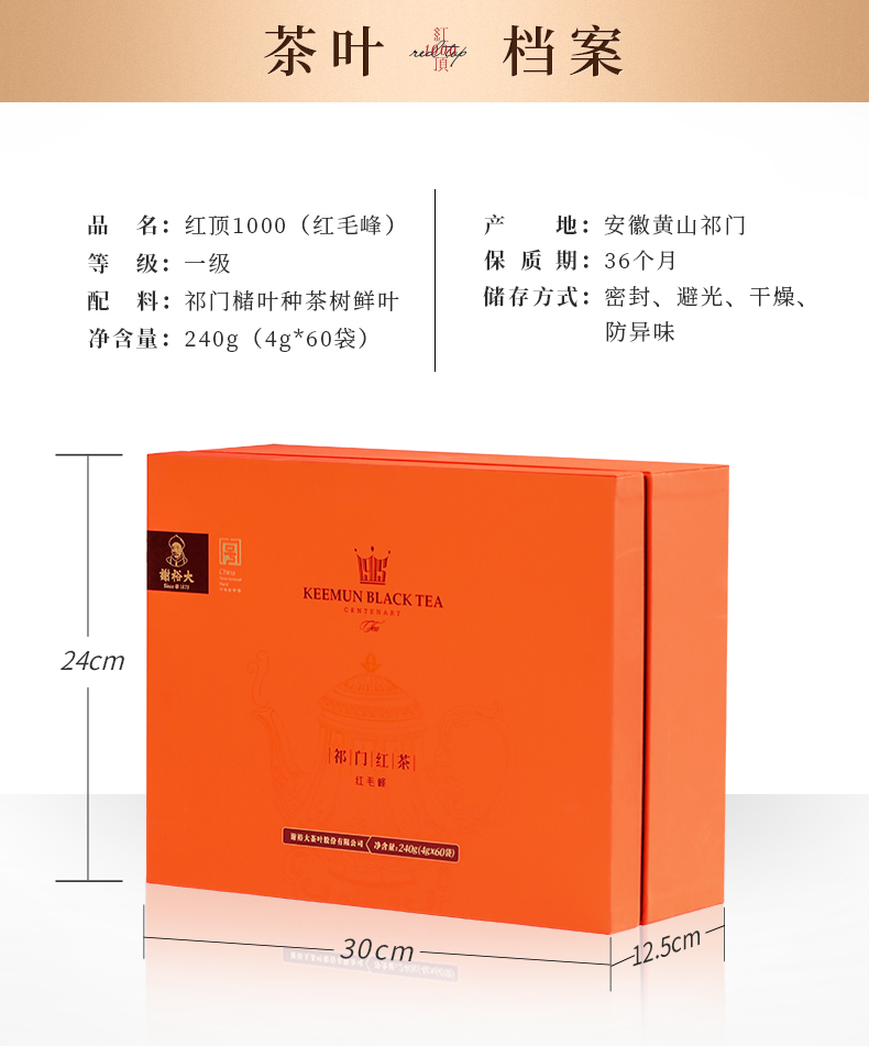 谢裕大祁门红茶 金冠系列 祁红毛峰 红顶1000经典礼盒