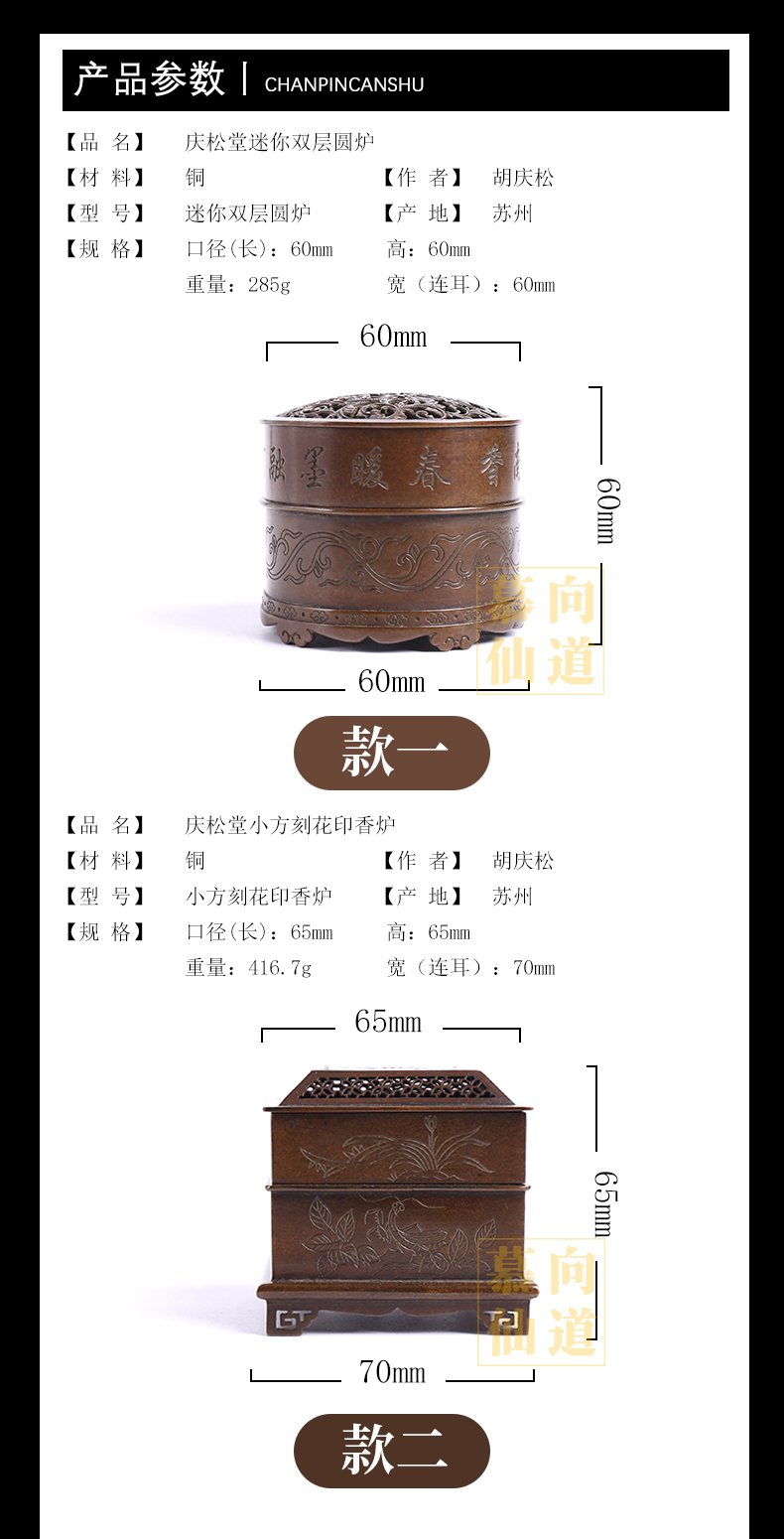 RZQS43庆松堂小方刻花印香炉