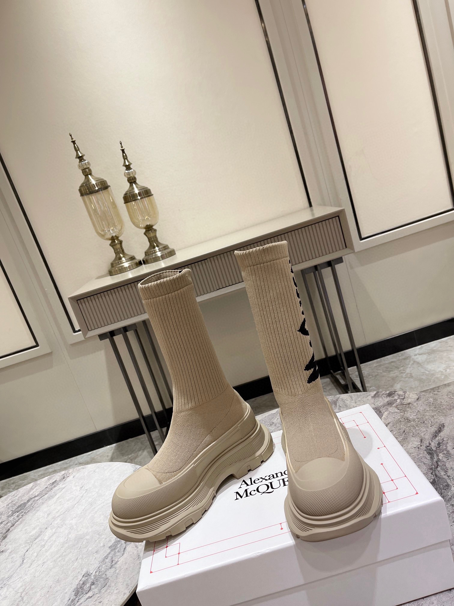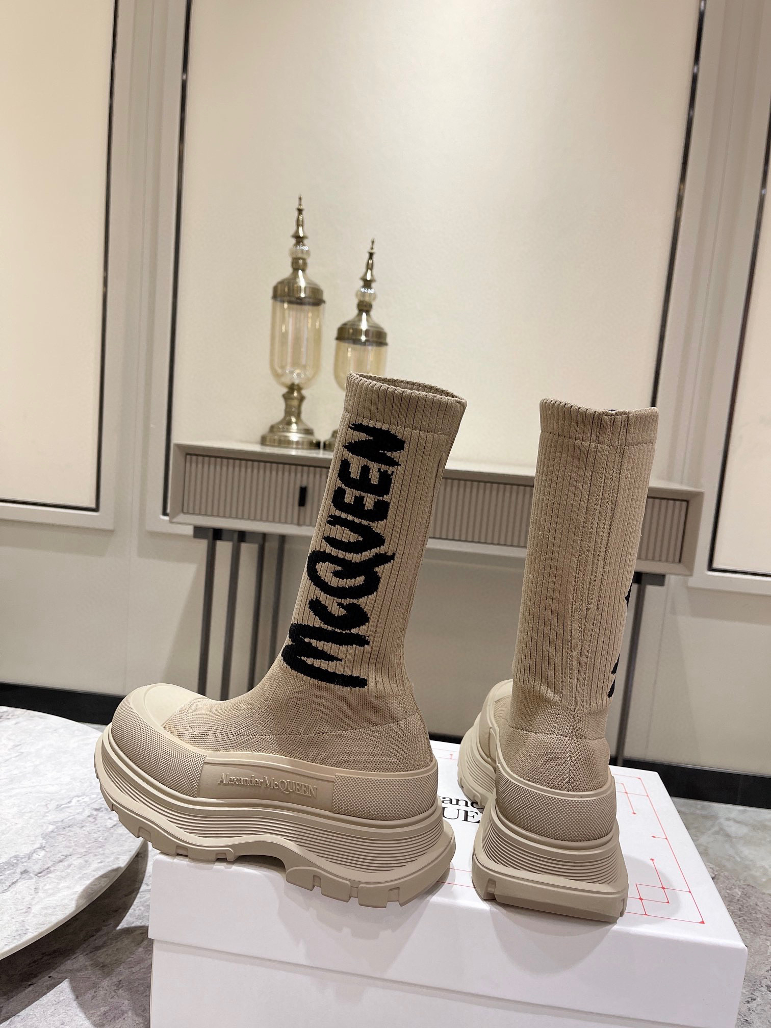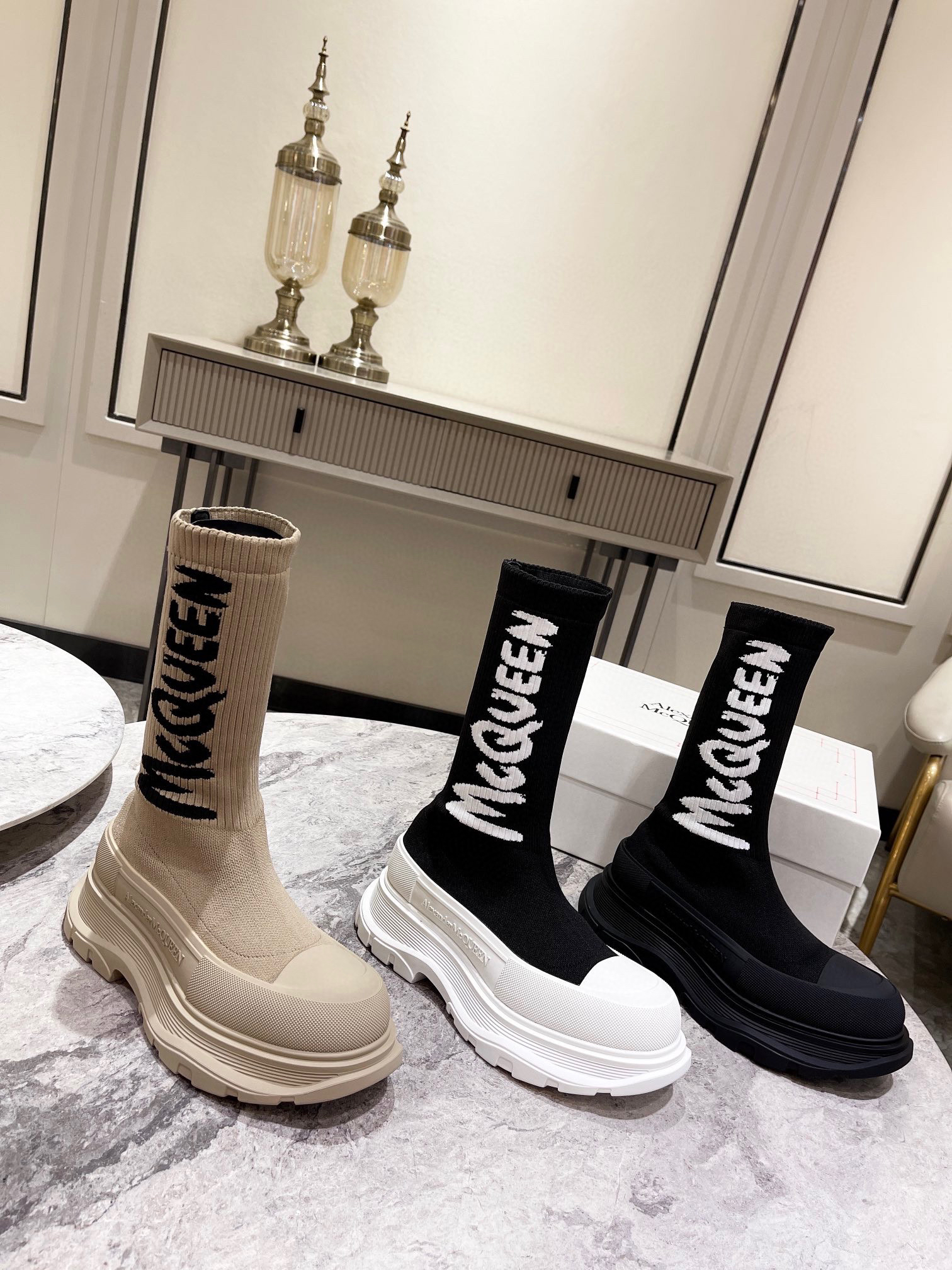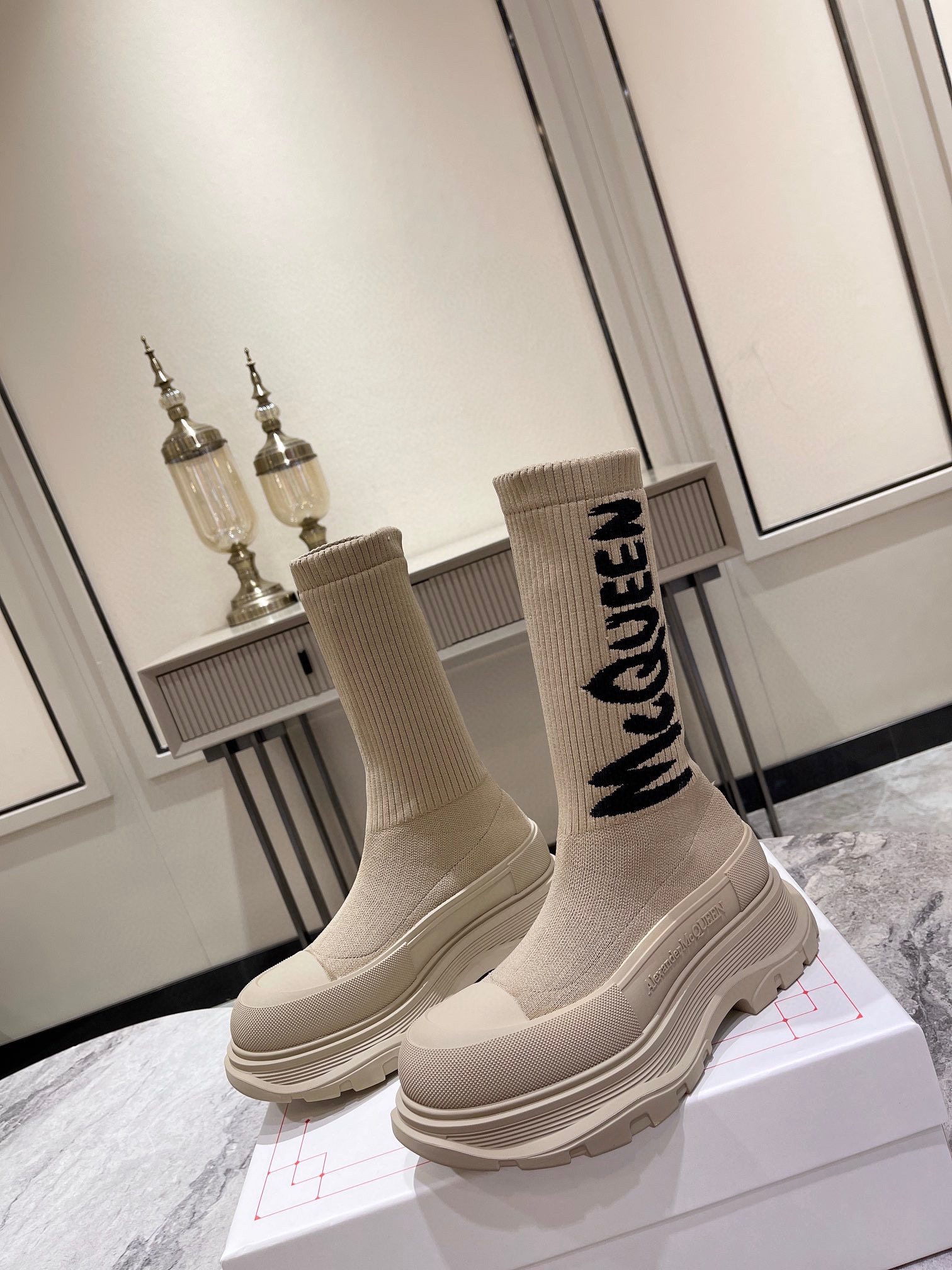 值得疯抢的魅力是它拥有今年主流元袜子套脚风格又不失麦昆独有的mcqueen大logo休闲时尚,上脚超有欧美风范。
