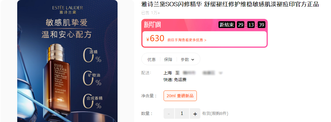 【3.24王炸割肉价】雅诗兰黛SOS闪修精华 舒缓褪红修护维稳敏感肌淡褪痘印5ml*2
