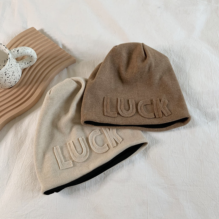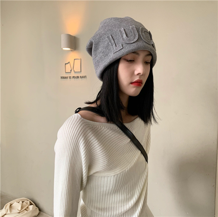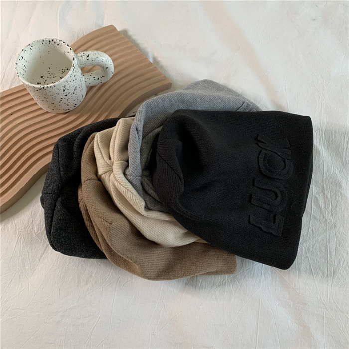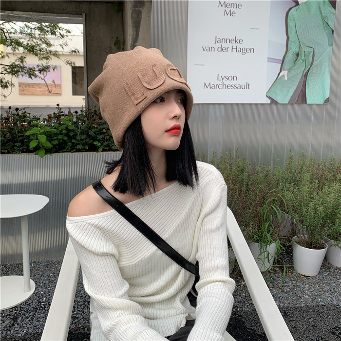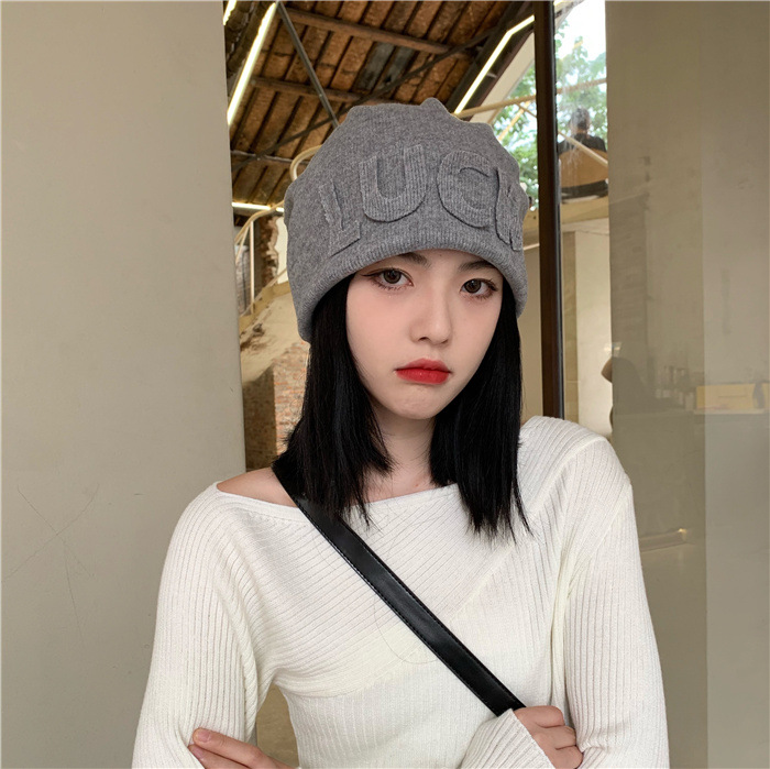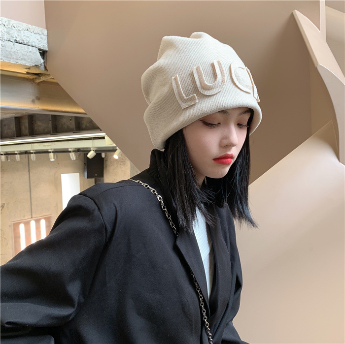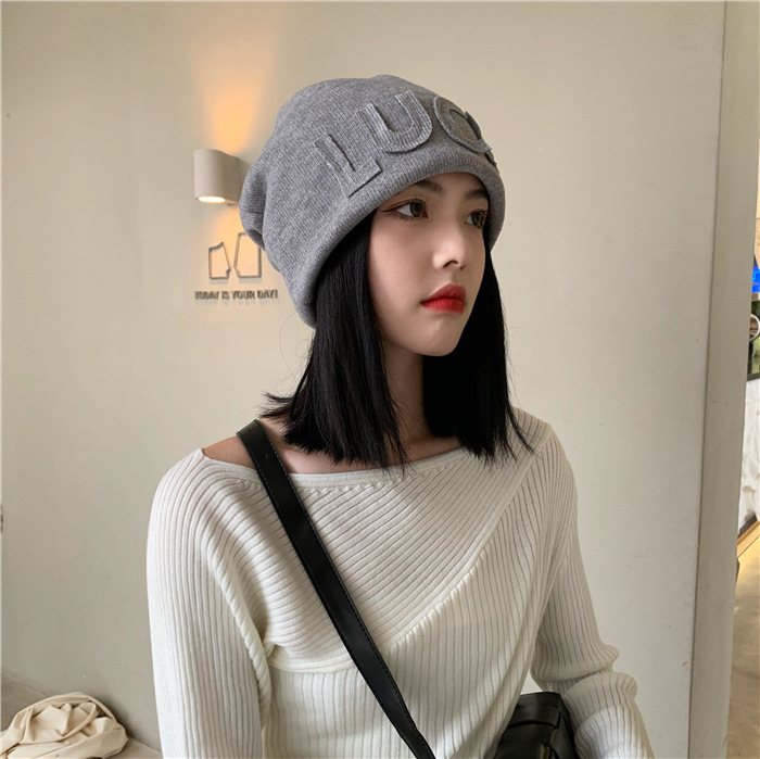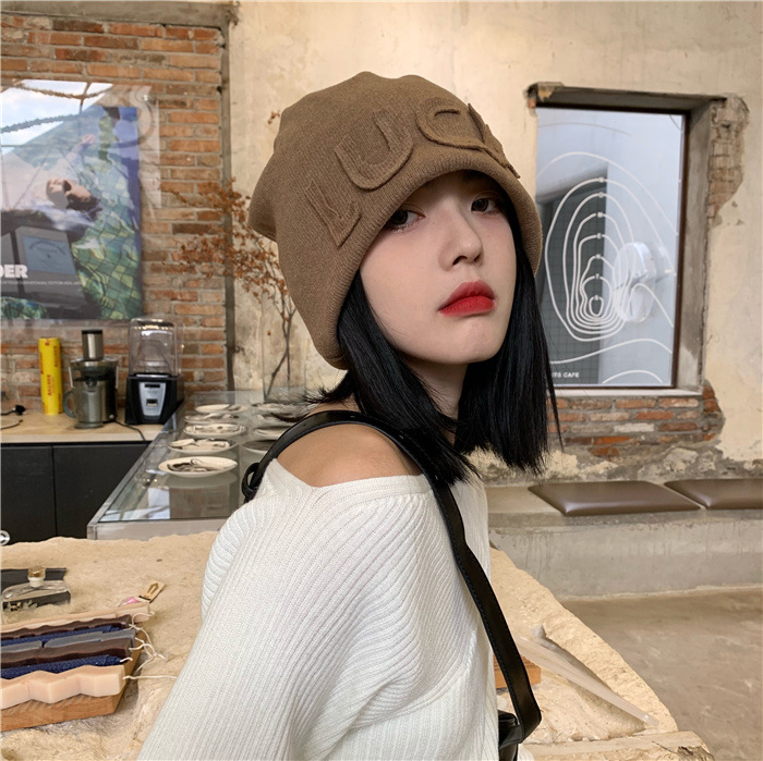 2021新款秋冬新款日系显脸小字母冷帽子女网红护耳包头帽大头围复古针织帽